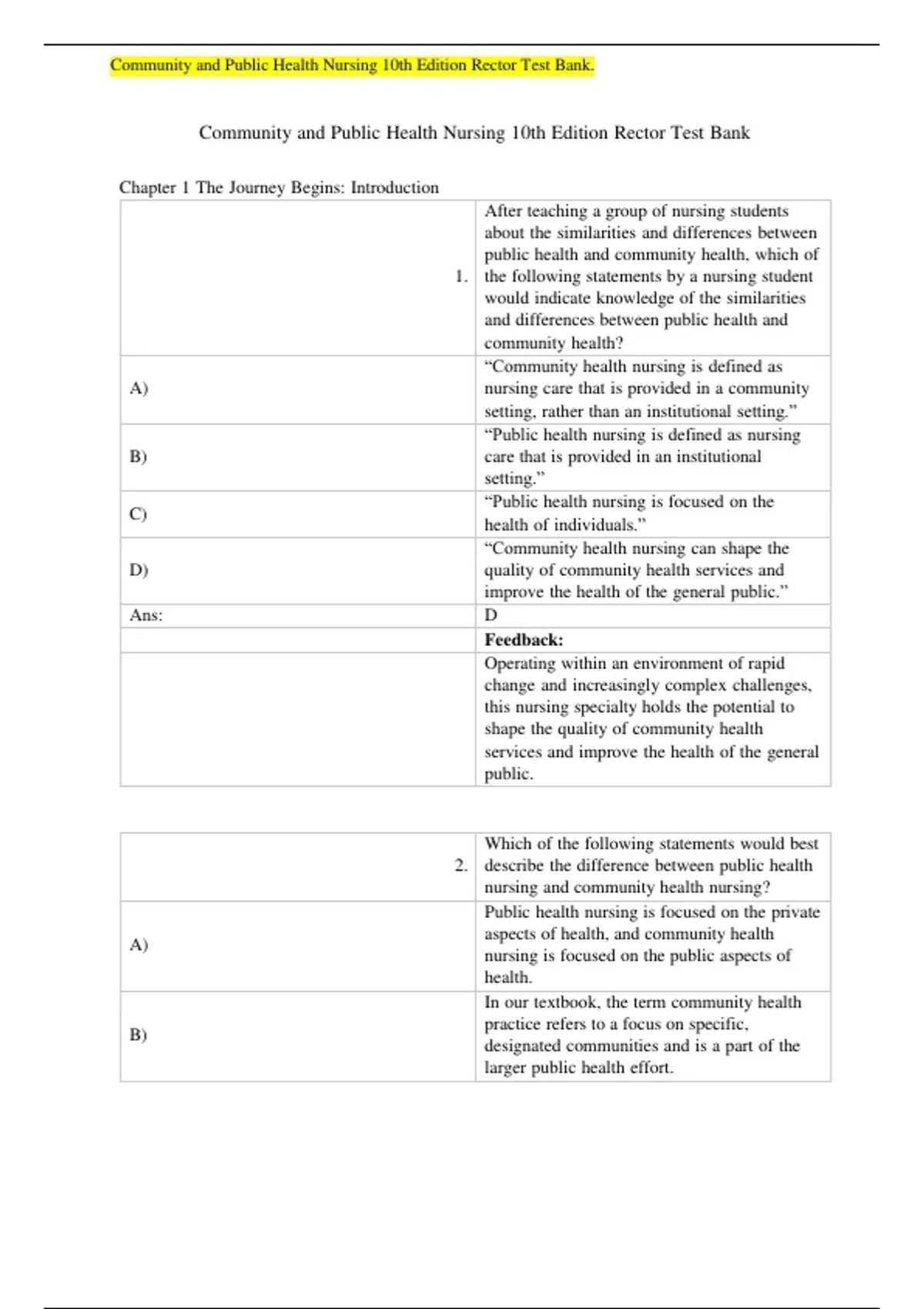 , Community and Public Health Nursing 10th Edition Rector Test Bank.