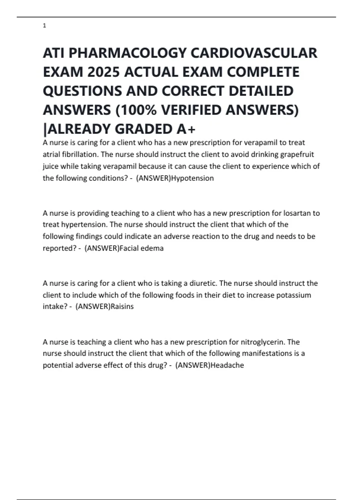 ATI PHARMACOLOGY CARDIOVASCULAR