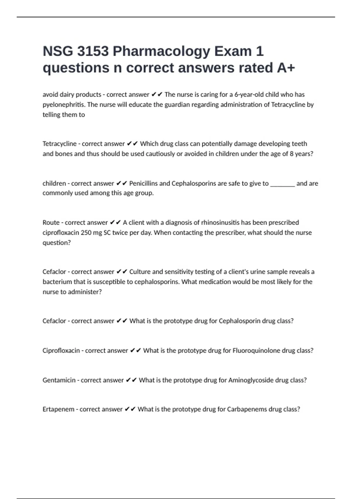 NSG 3153 Pharmacology Exam 1 questions n correct answers rated A+
