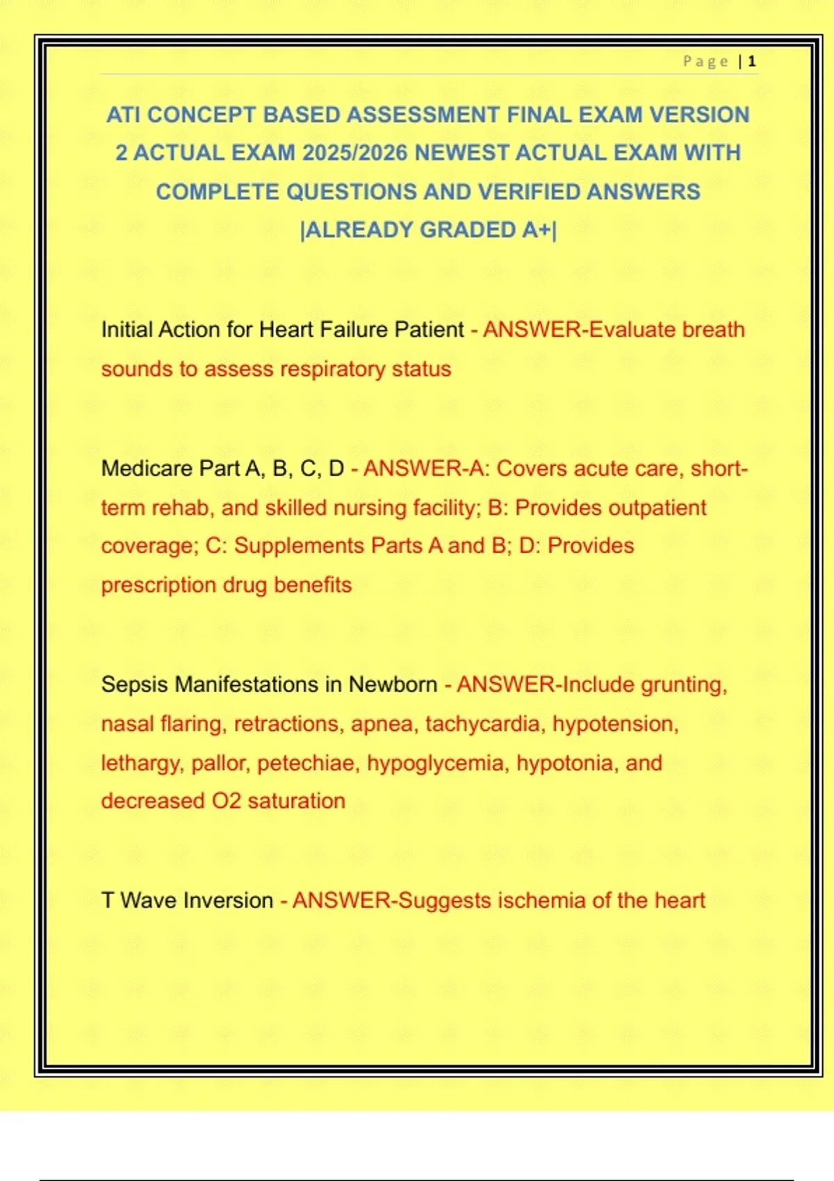 ATI CONCEPT BASED ASSESSMENT FINAL EXAM VERSION