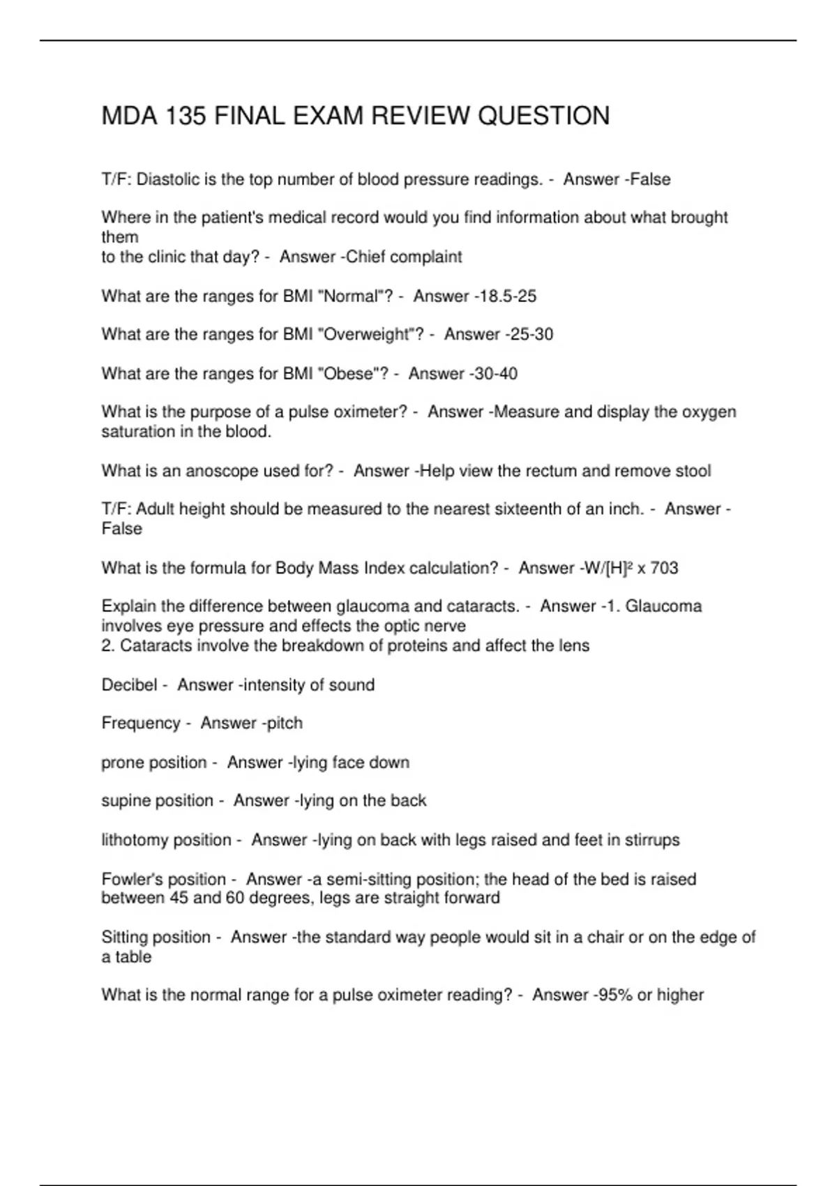 MDA 135 FINAL EXAM REVIEW QUESTION
