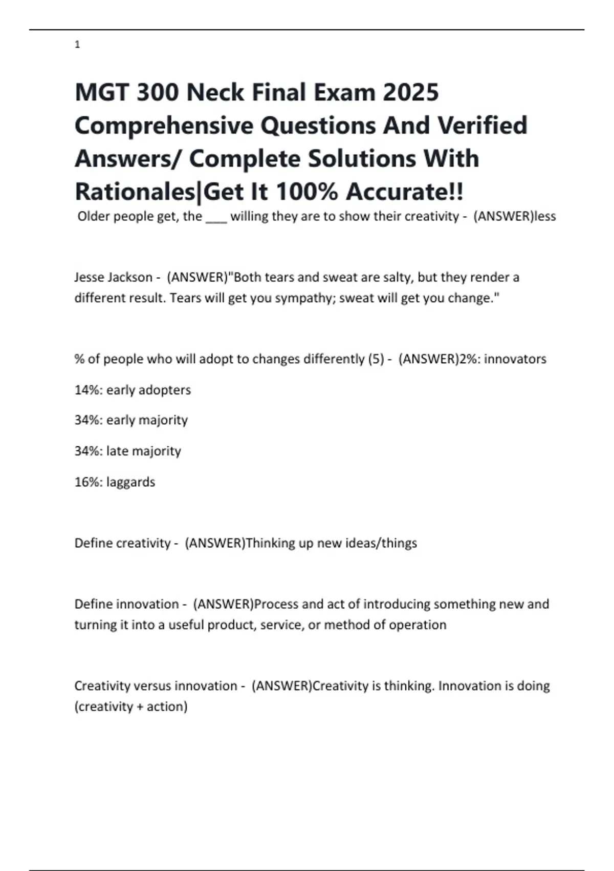 MGT 300 Neck Final Exam 2025 Comprehensive Questions And Verified Answers/ Complete Solutions With Rationales|Get It 100% Accurate!!