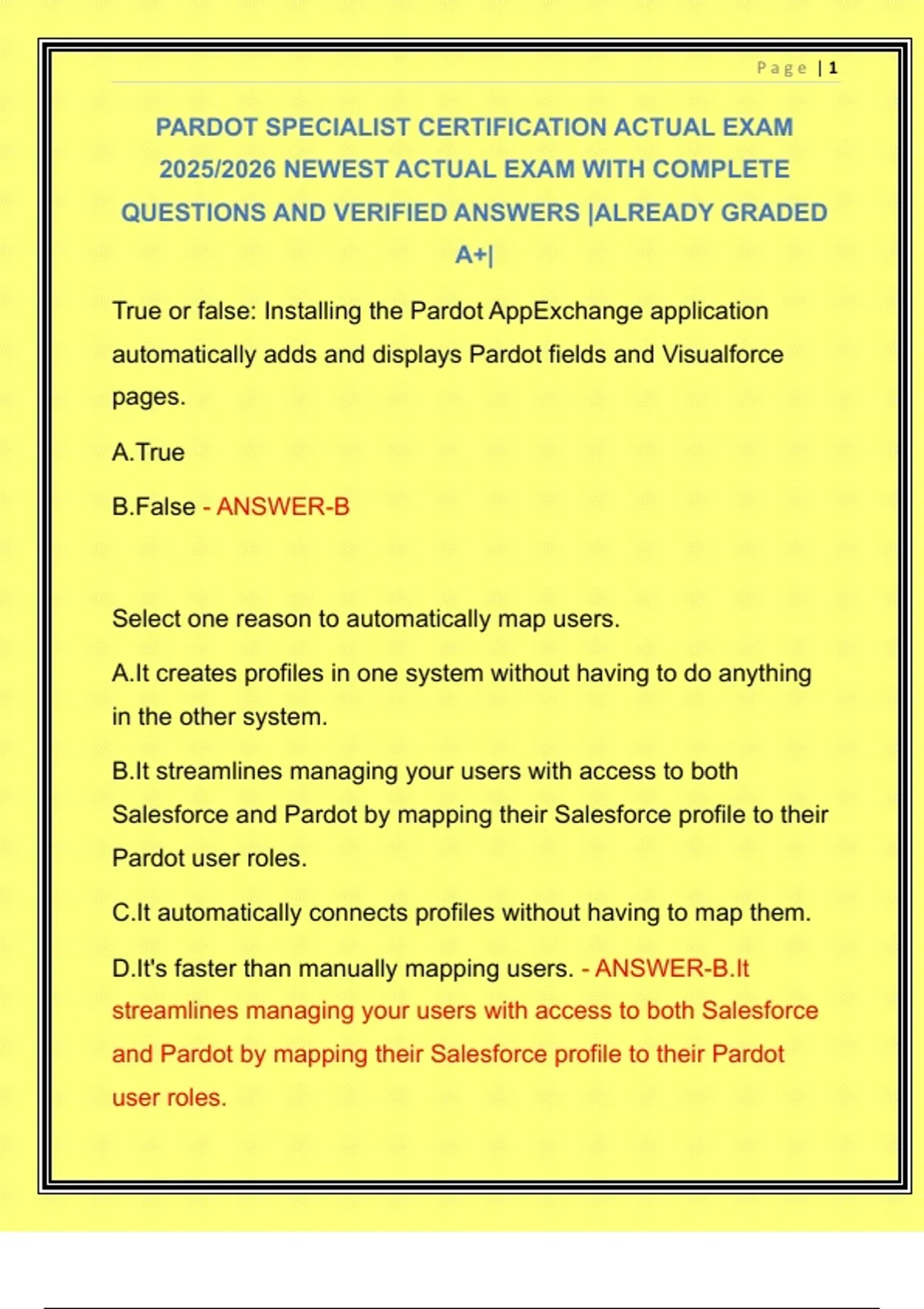 PARDOT SPECIALIST CERTIFICATION ACTUAL EXAM