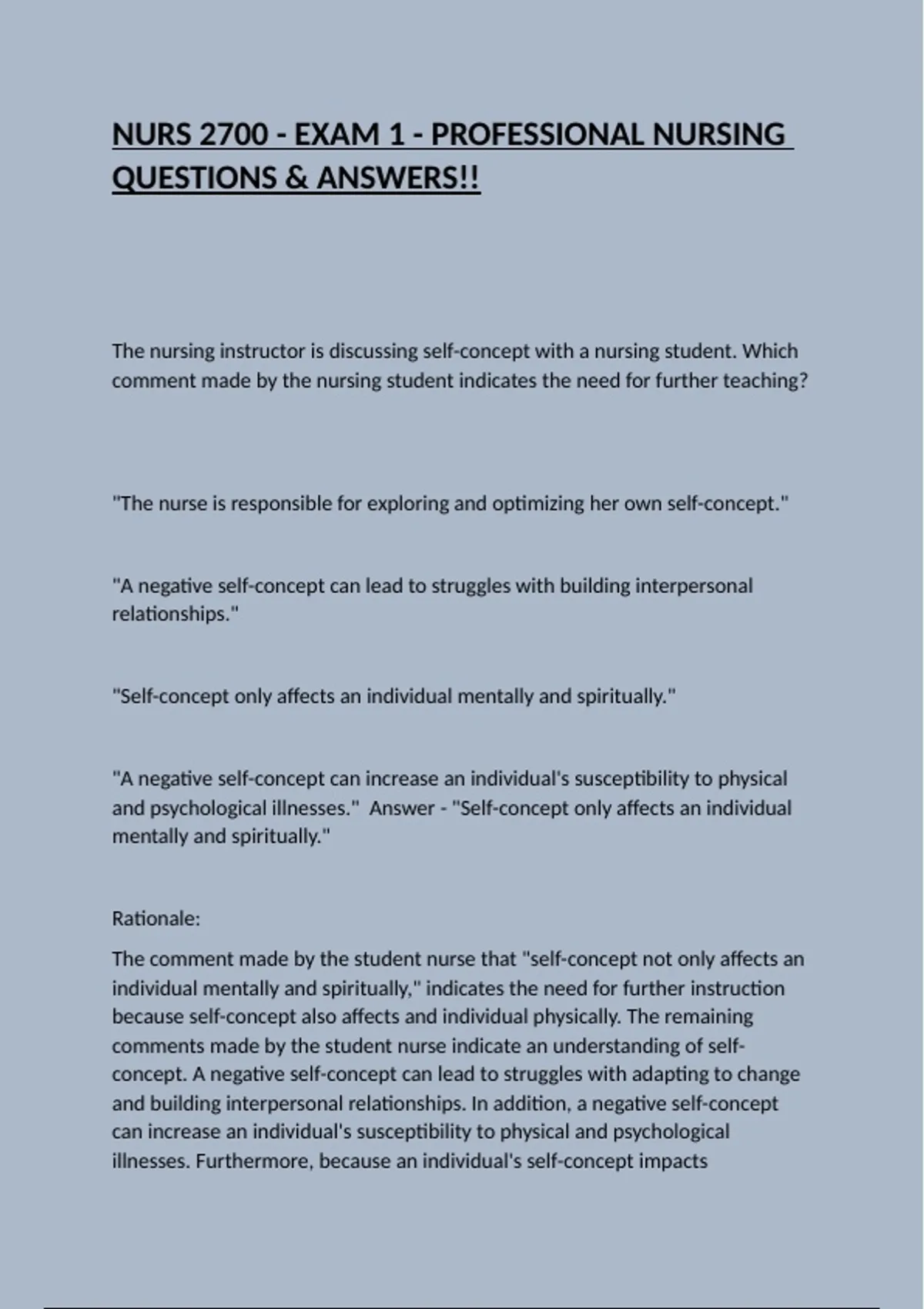 and psychological illnesses." Answer - "Self-concept only affects an individual