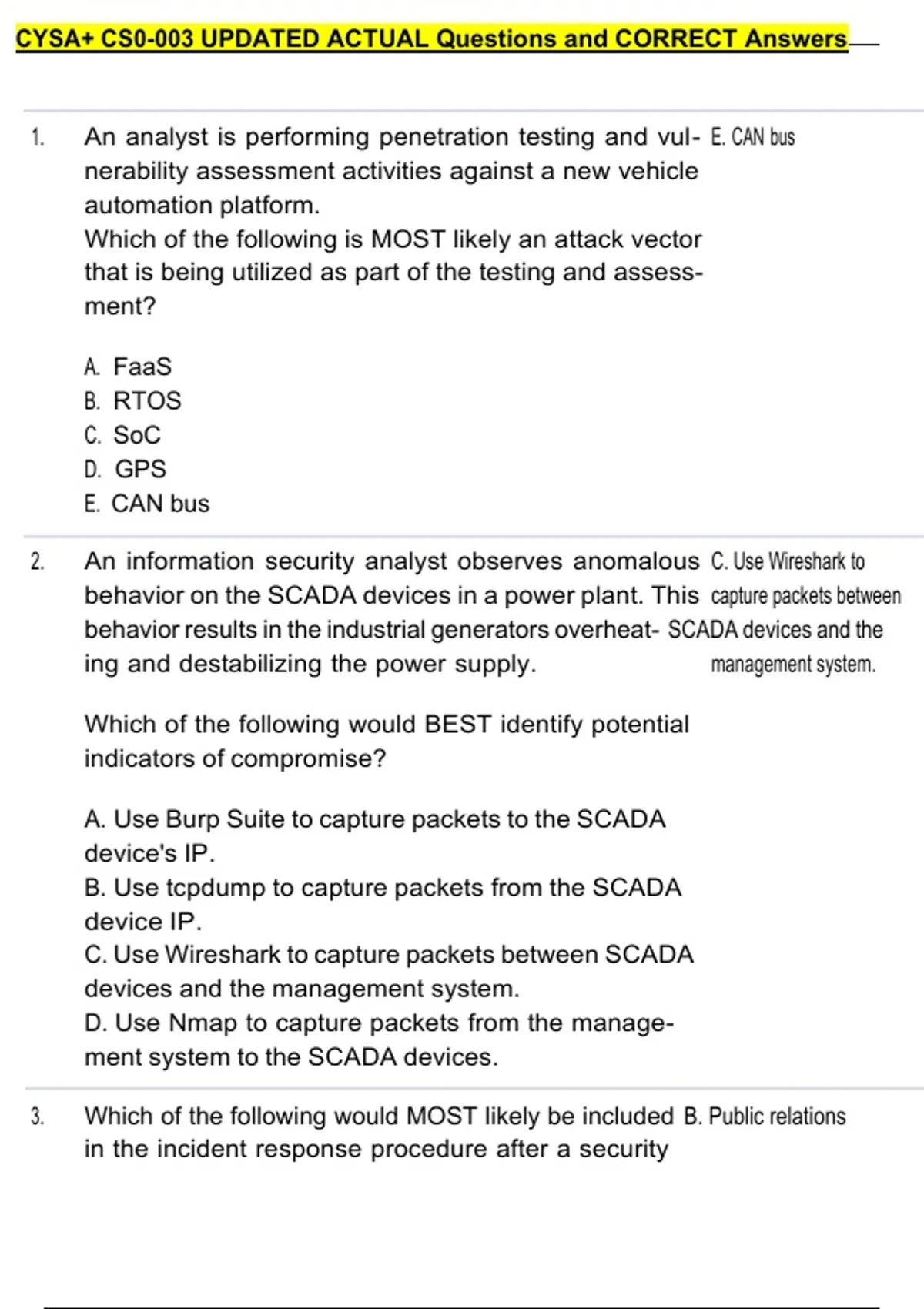 1. An analyst is performing penetration testing and vul- E. CAN bus