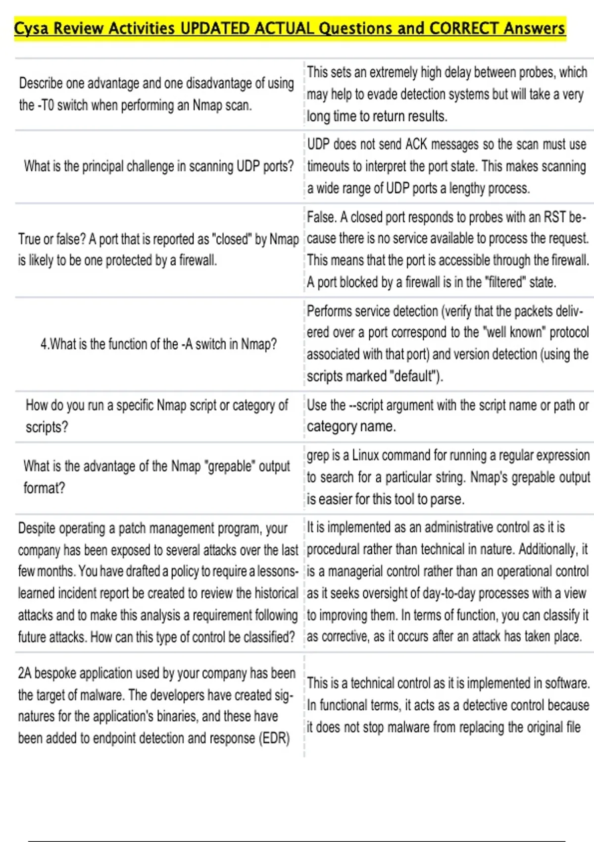 Cysa Review Activities UPDATED ACTUAL Questions and CORRECT Answers
