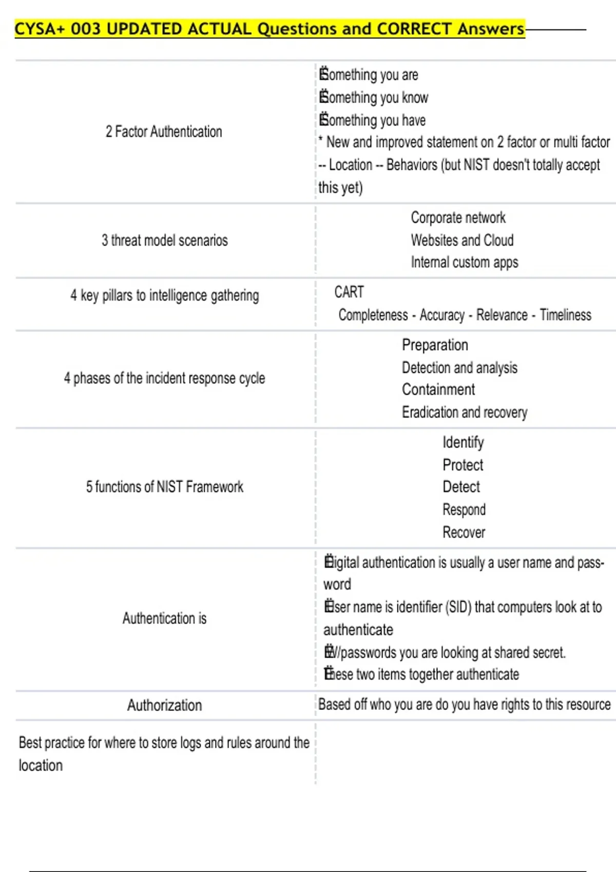 CYSA+ 003 UPDATED ACTUAL Questions and CORRECT Answers