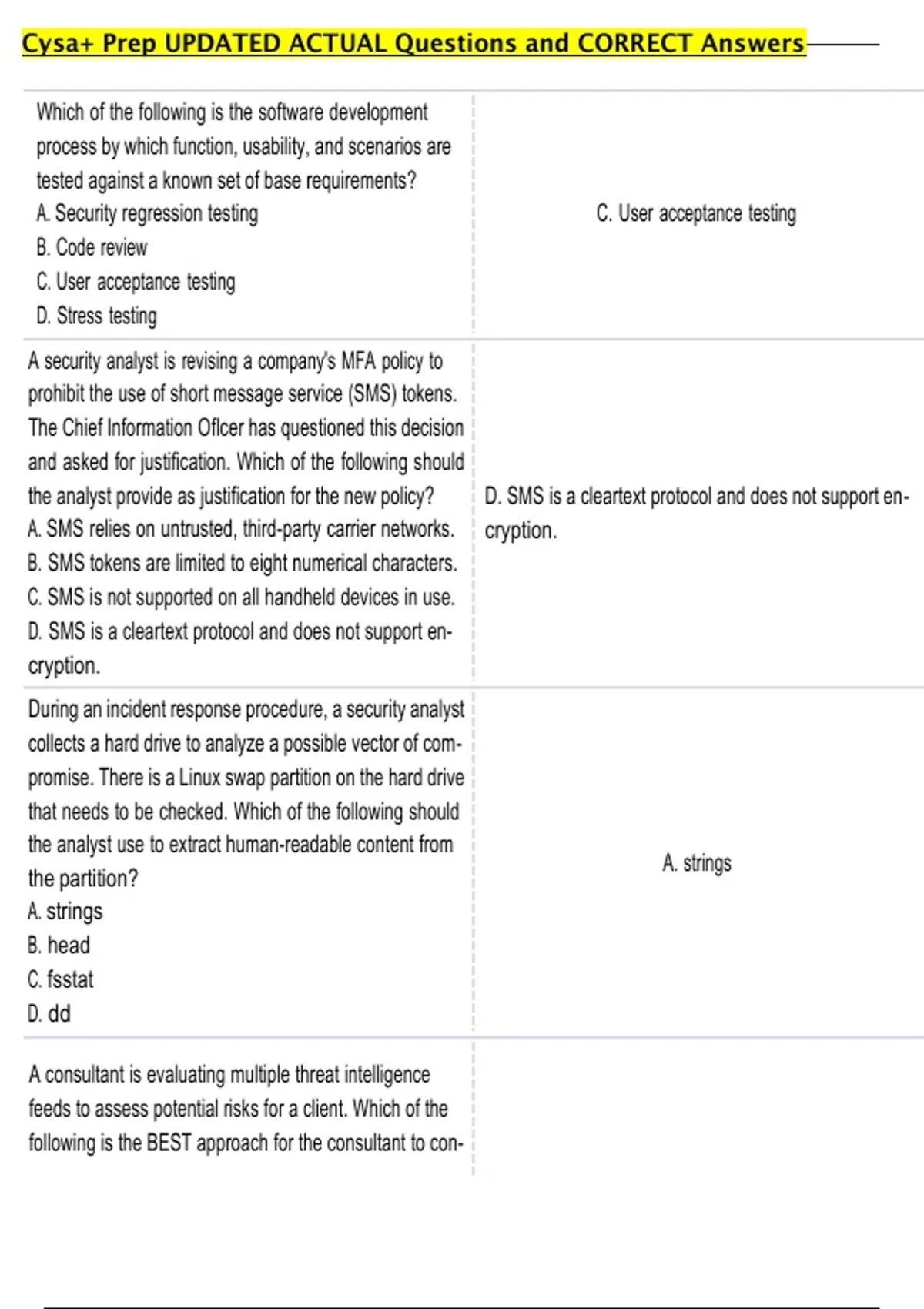 Cysa+ Prep UPDATED ACTUAL Questions and CORRECT Answers