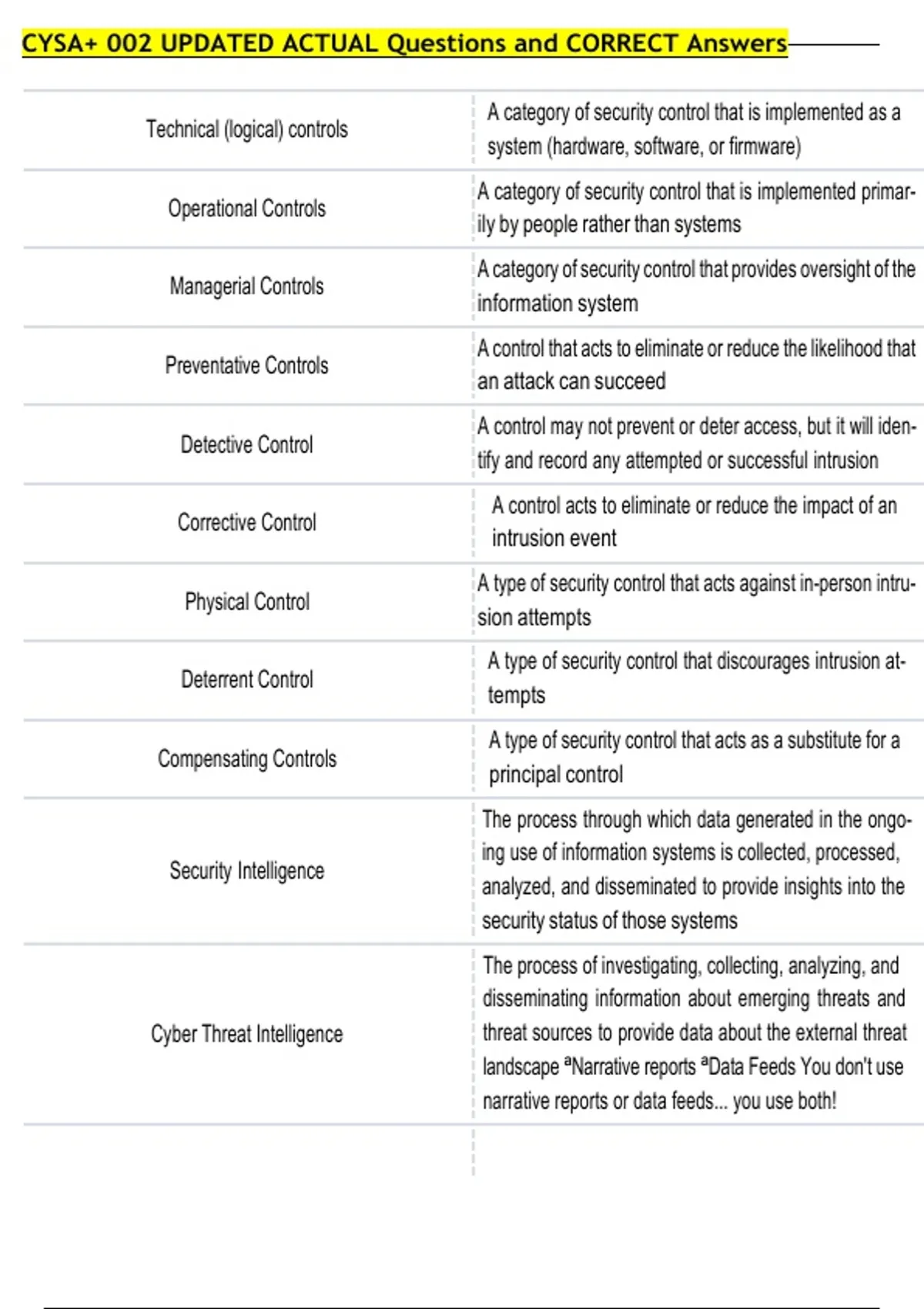 CYSA+ 002 UPDATED ACTUAL Questions and CORRECT Answers