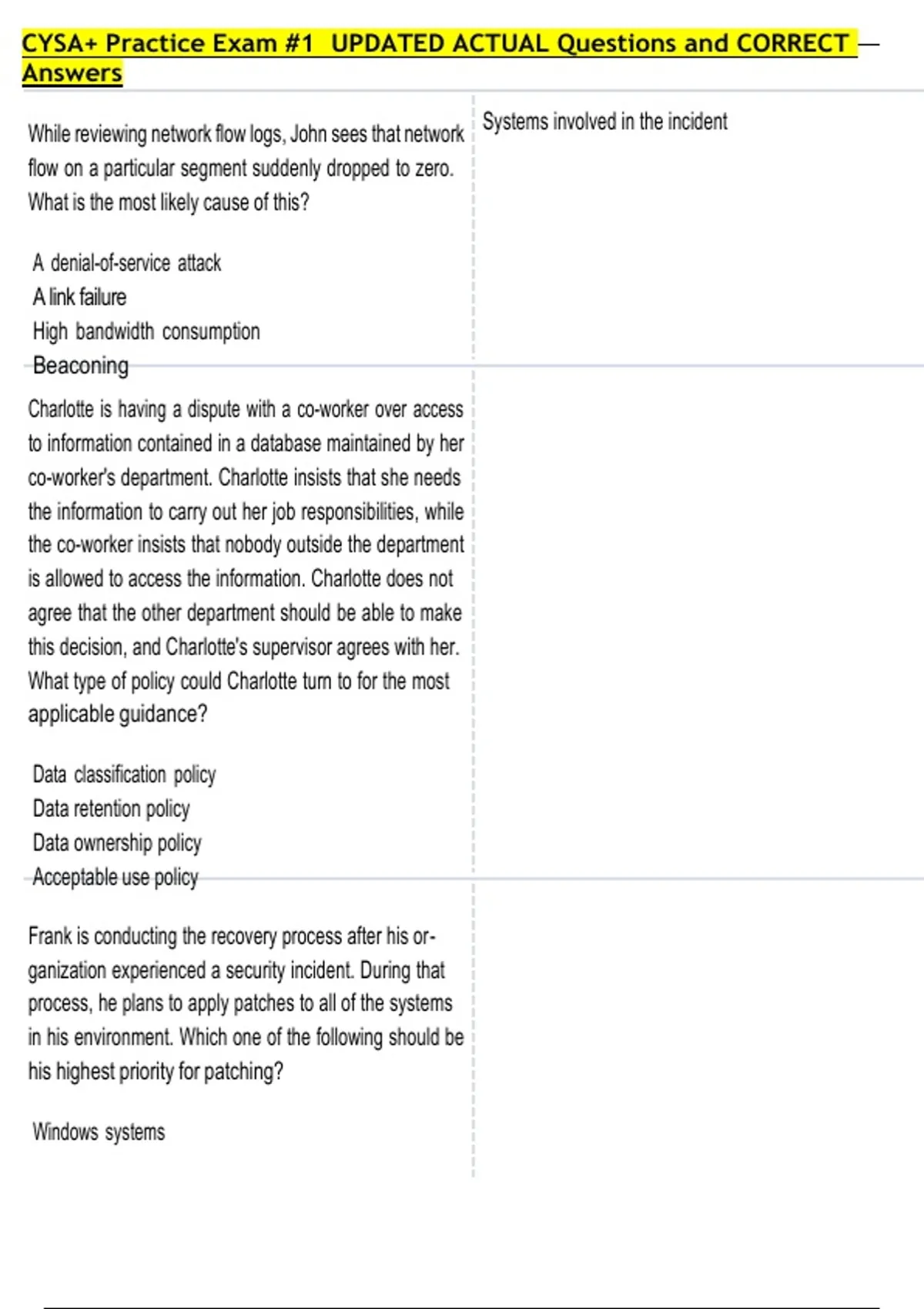 CYSA+ Practice Exam #1 UPDATED ACTUAL Questions and CORRECT