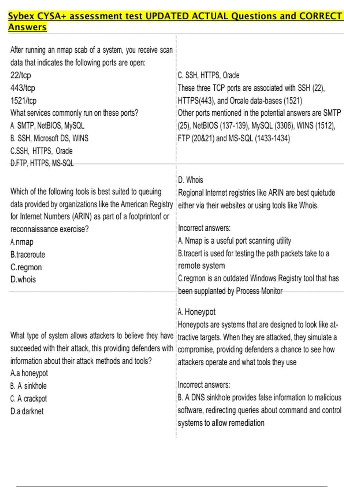 22/tcp C. SSH, HTTPS, Oracle