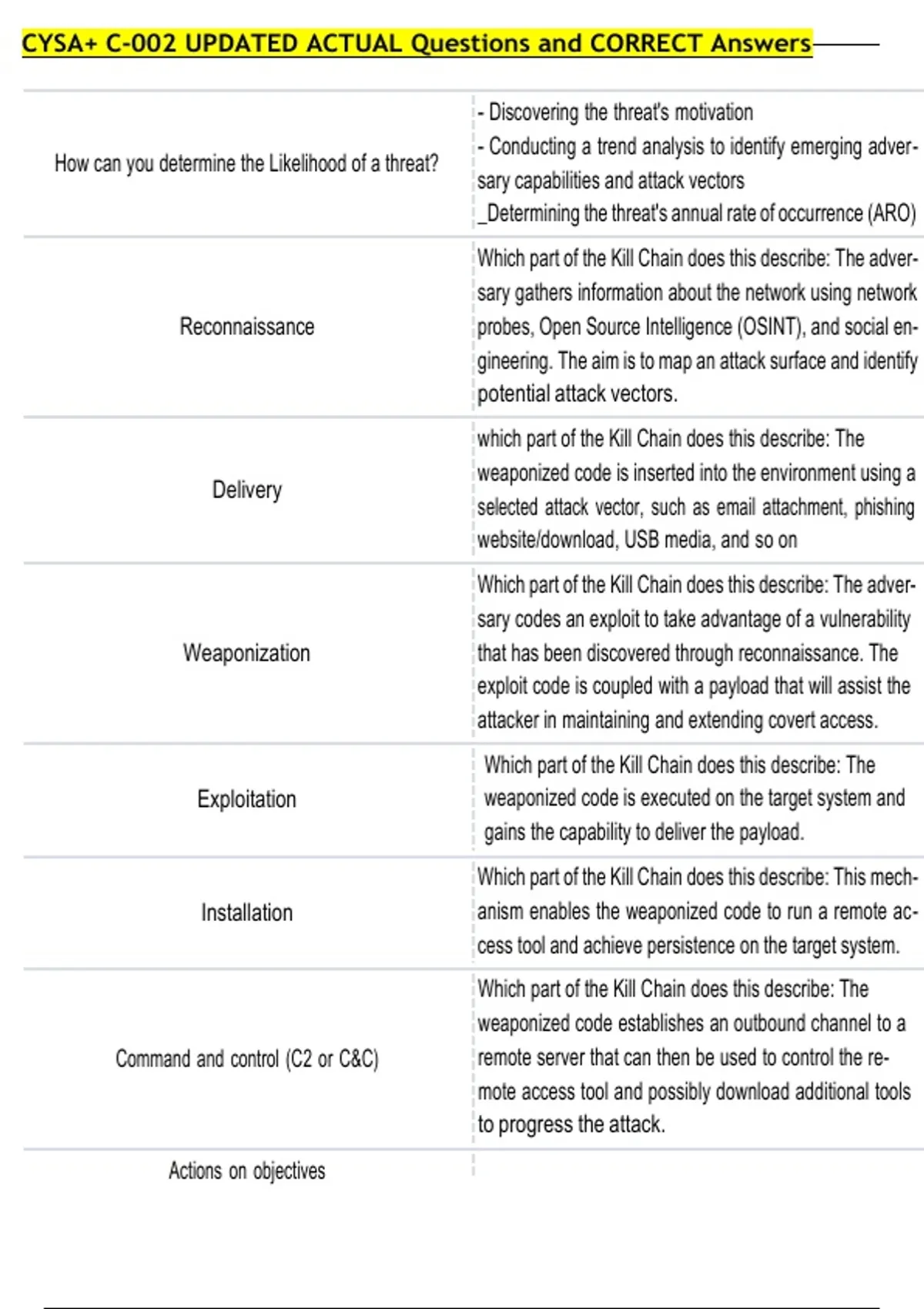 CYSA+ C-002 UPDATED ACTUAL Questions and CORRECT Answers