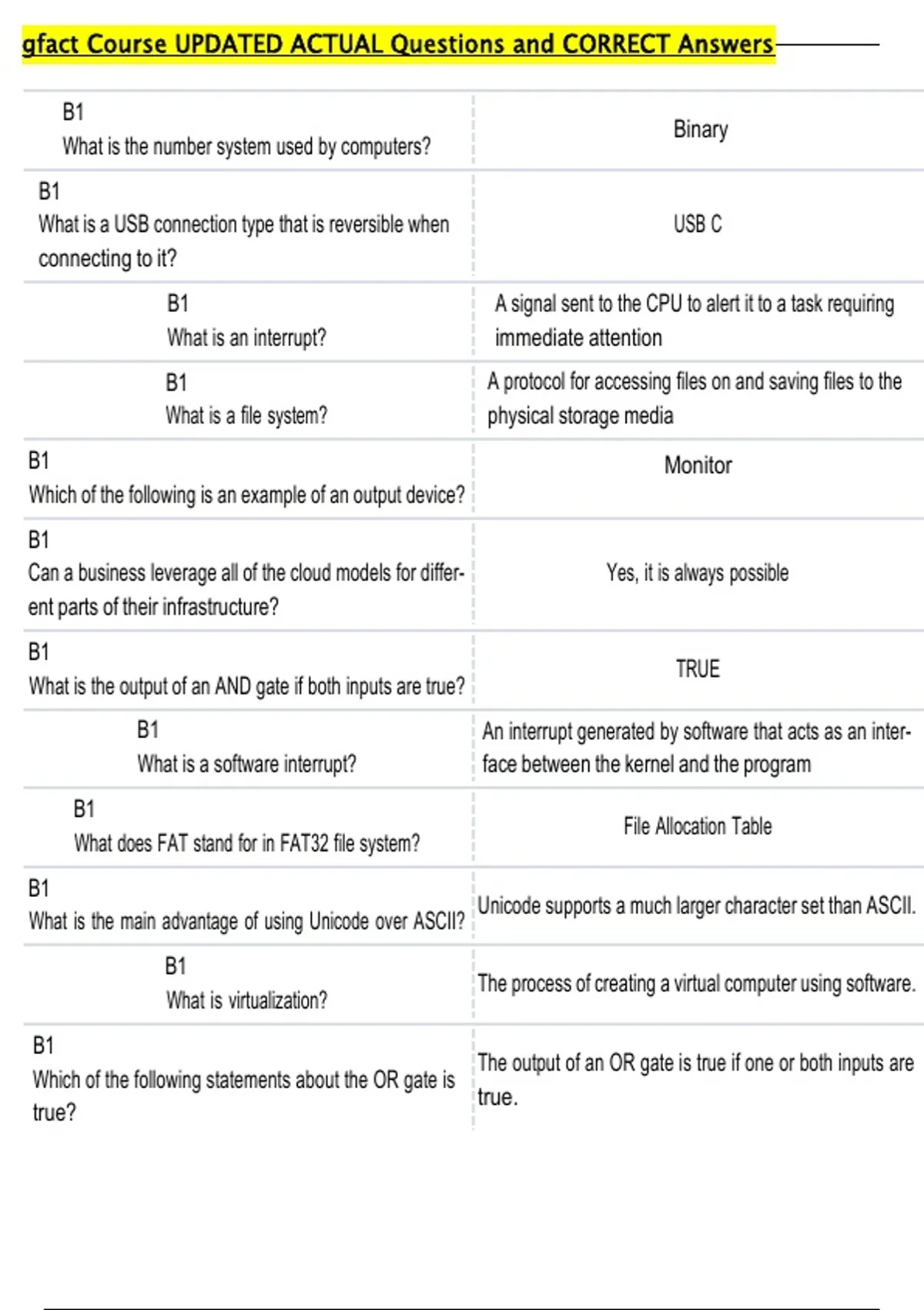 gfact Course UPDATED ACTUAL Questions and CORRECT Answers
