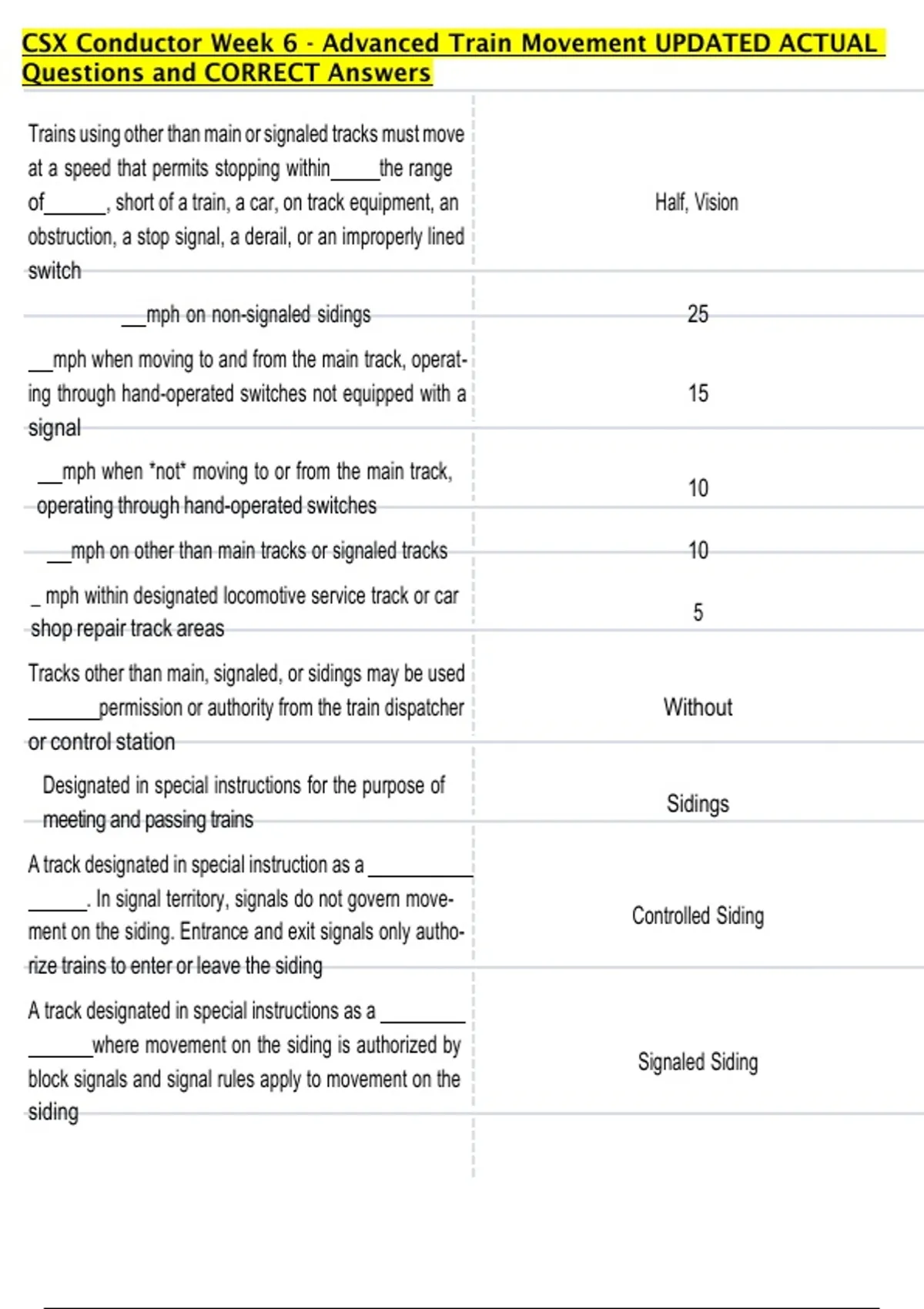 mph on non-signaled sidings 25