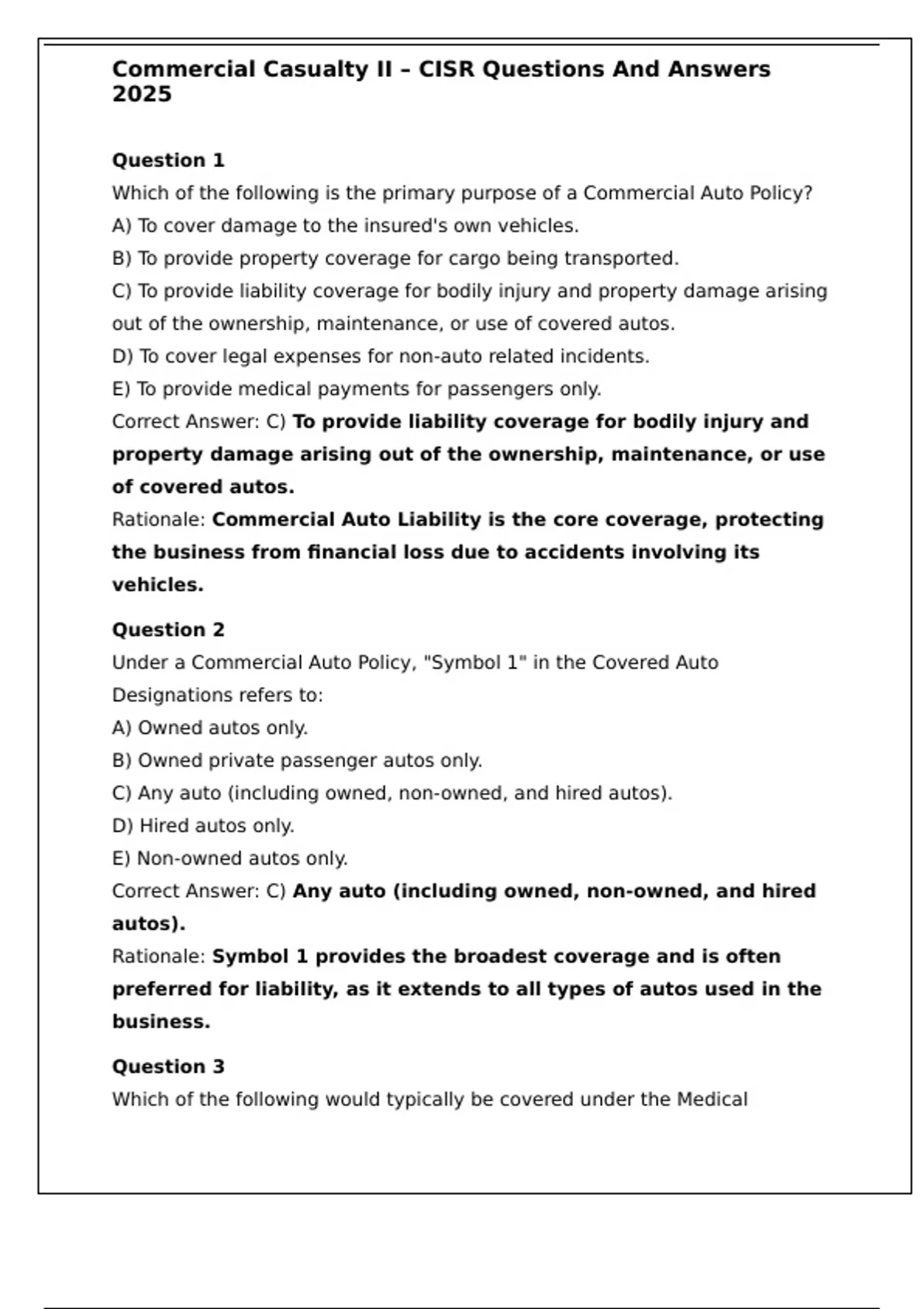 Rationale: Commercial Auto Liability is the core coverage, protecting