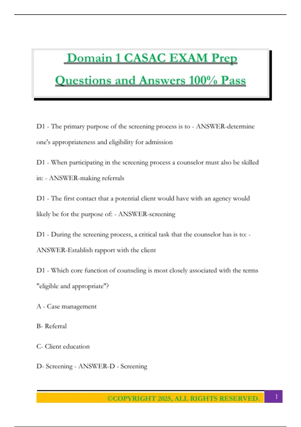 Domain 1 CASAC EXAM Prep