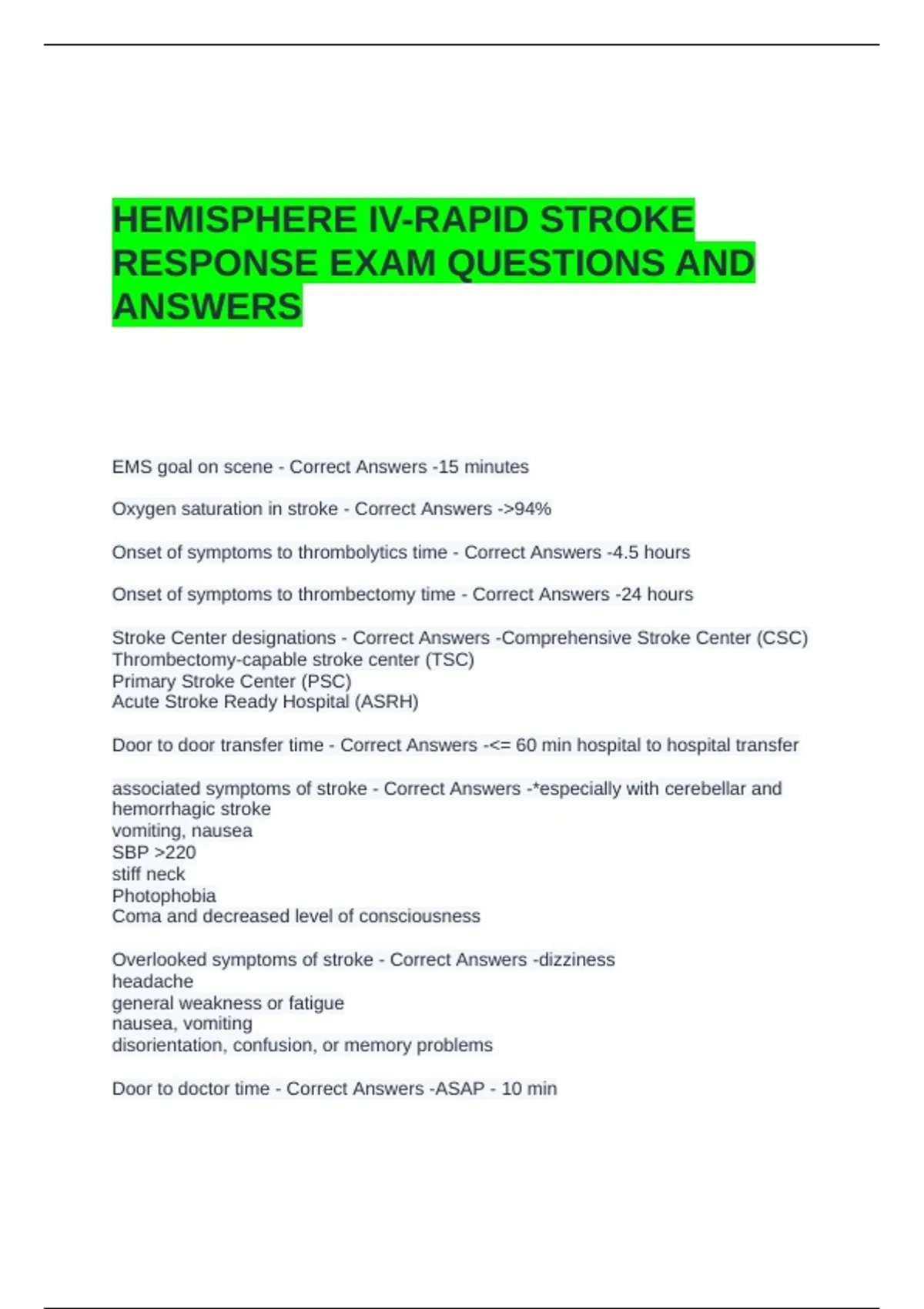 Door to stroke team time (neuro expertise) - Correct Answers -ASAP - 15