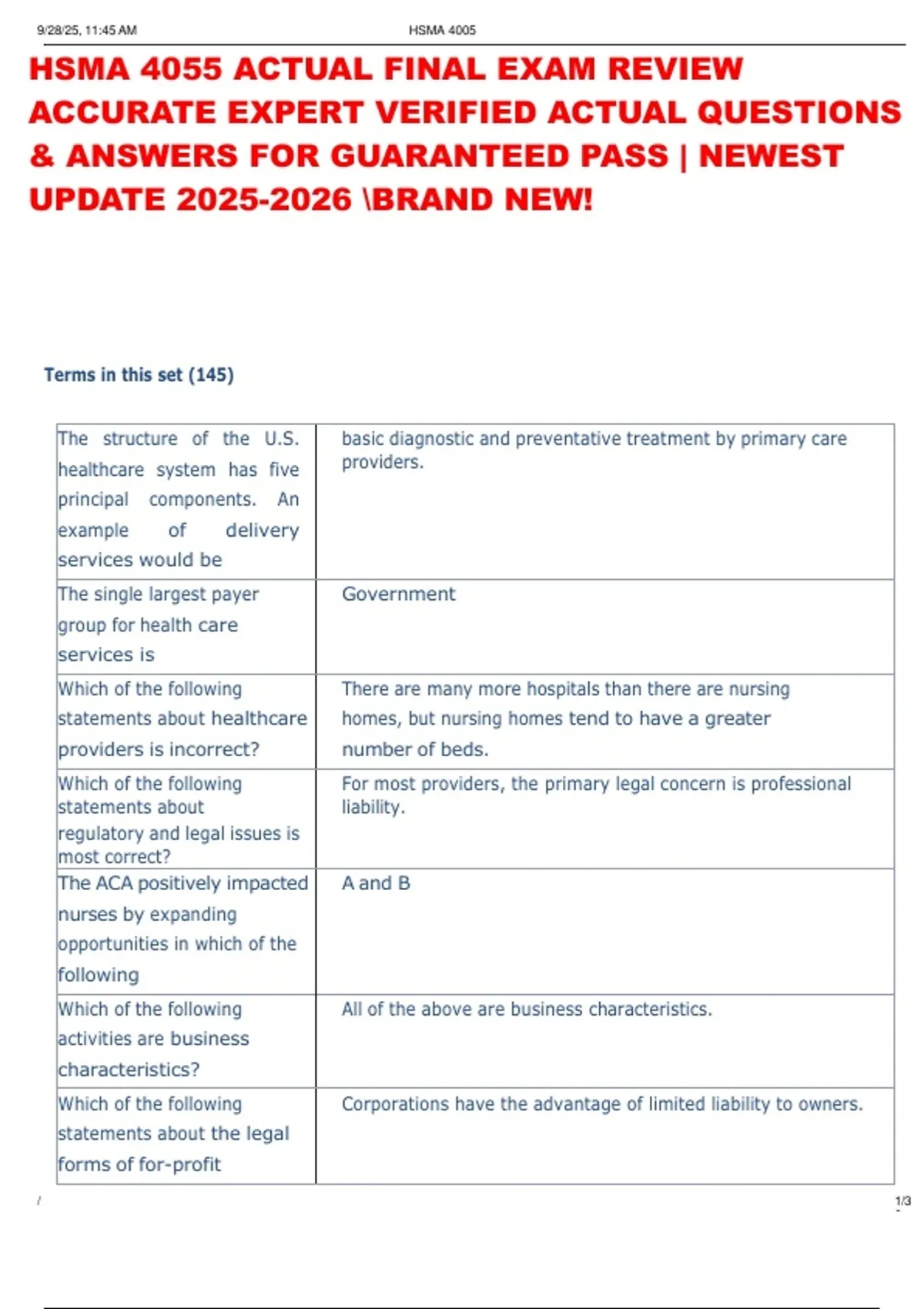 , 9/28/25, 11:49 AM HSMA 4055 FINAL EXAM REVIEW