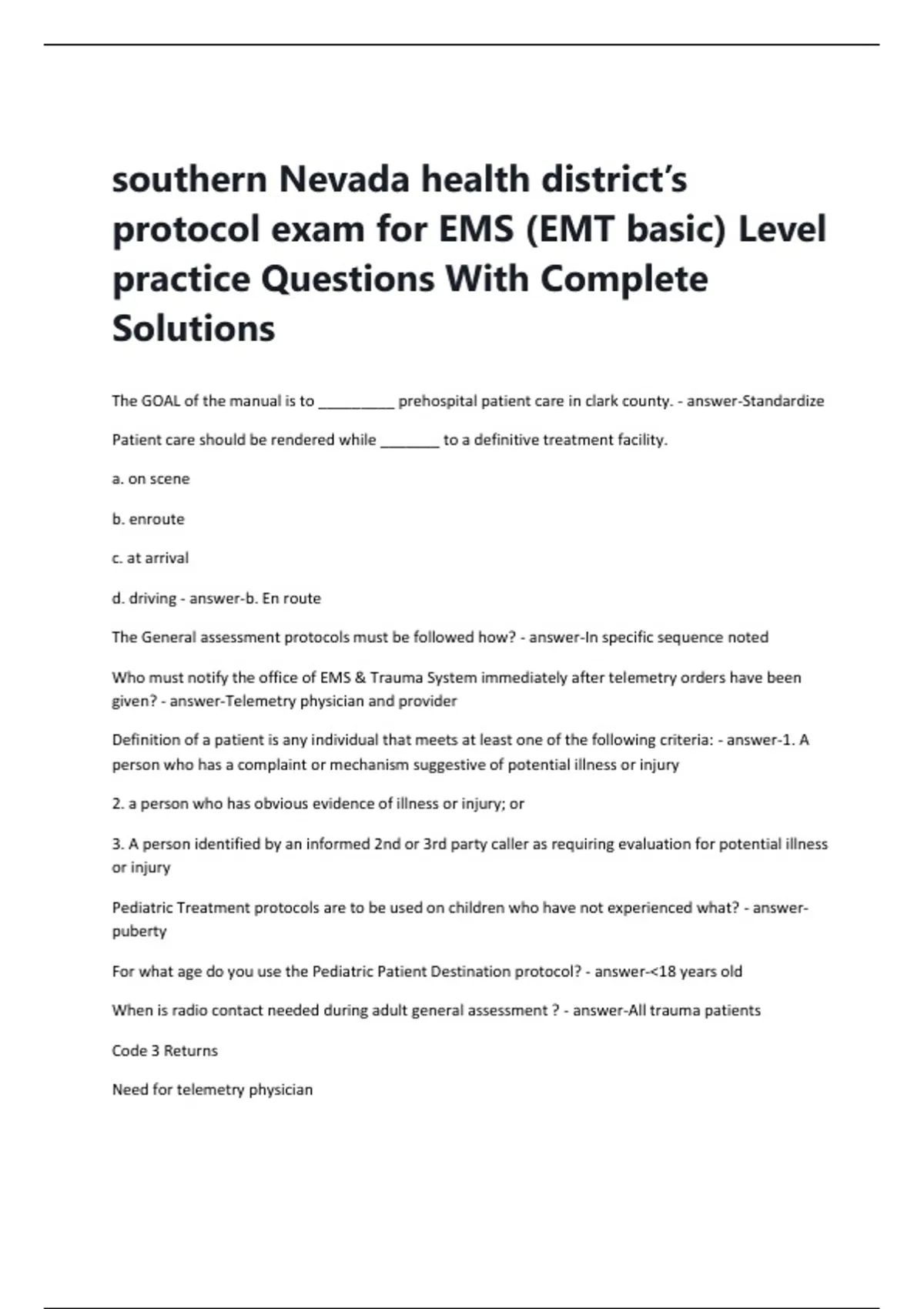 protocol exam for EMS (EMT basic) Level