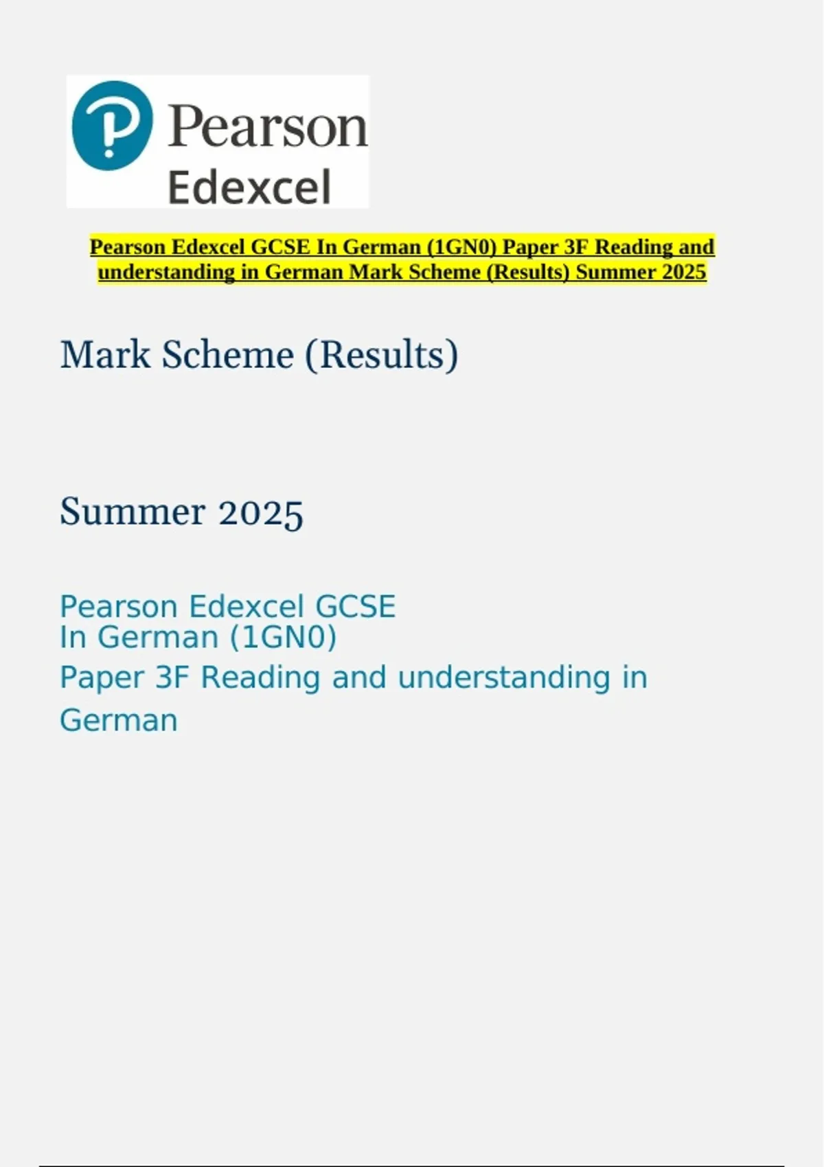 Pearson Edexcel GCSE In German (1GN0) Paper 3F Reading and understanding in German Mark Scheme (Results) Summer 2025