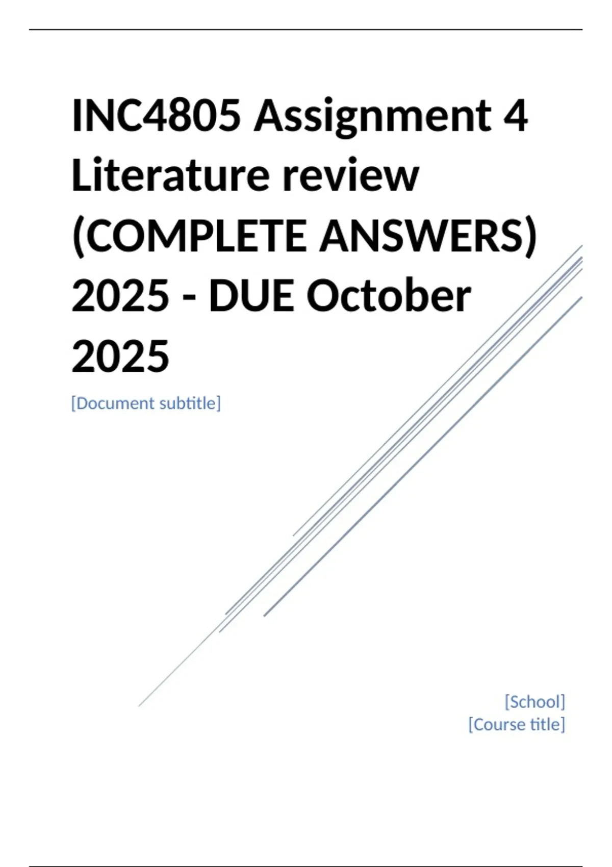 , INC4805 Assignment 4 Literature review (COMPLETE ANSWERS) 2025 - DUE October 2025