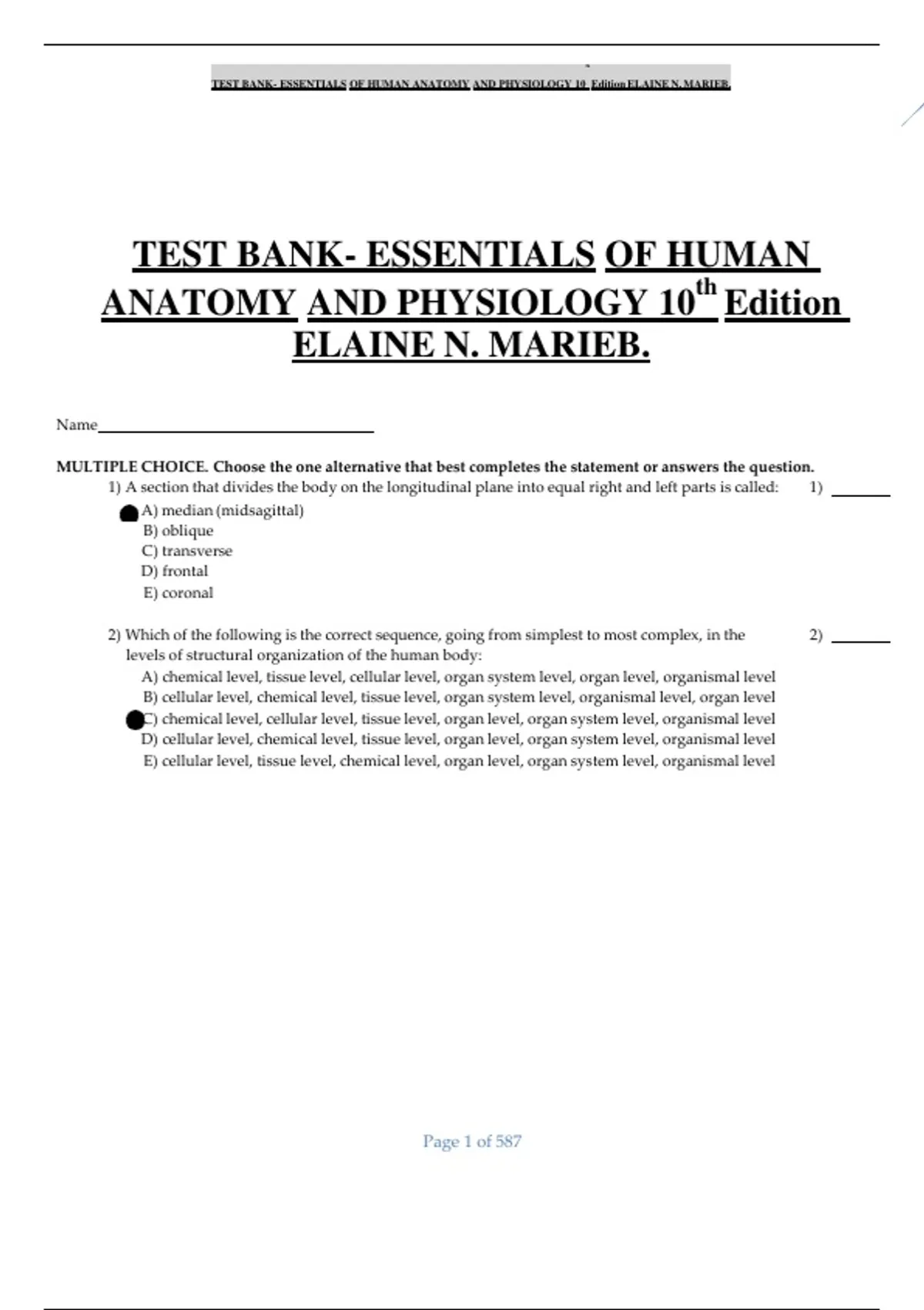 TEST BANK- ESSENTIALS OF HUMAN ANATOMY AND PHYSIOLOGY 10 Edition ELAINE N. MARIEB.