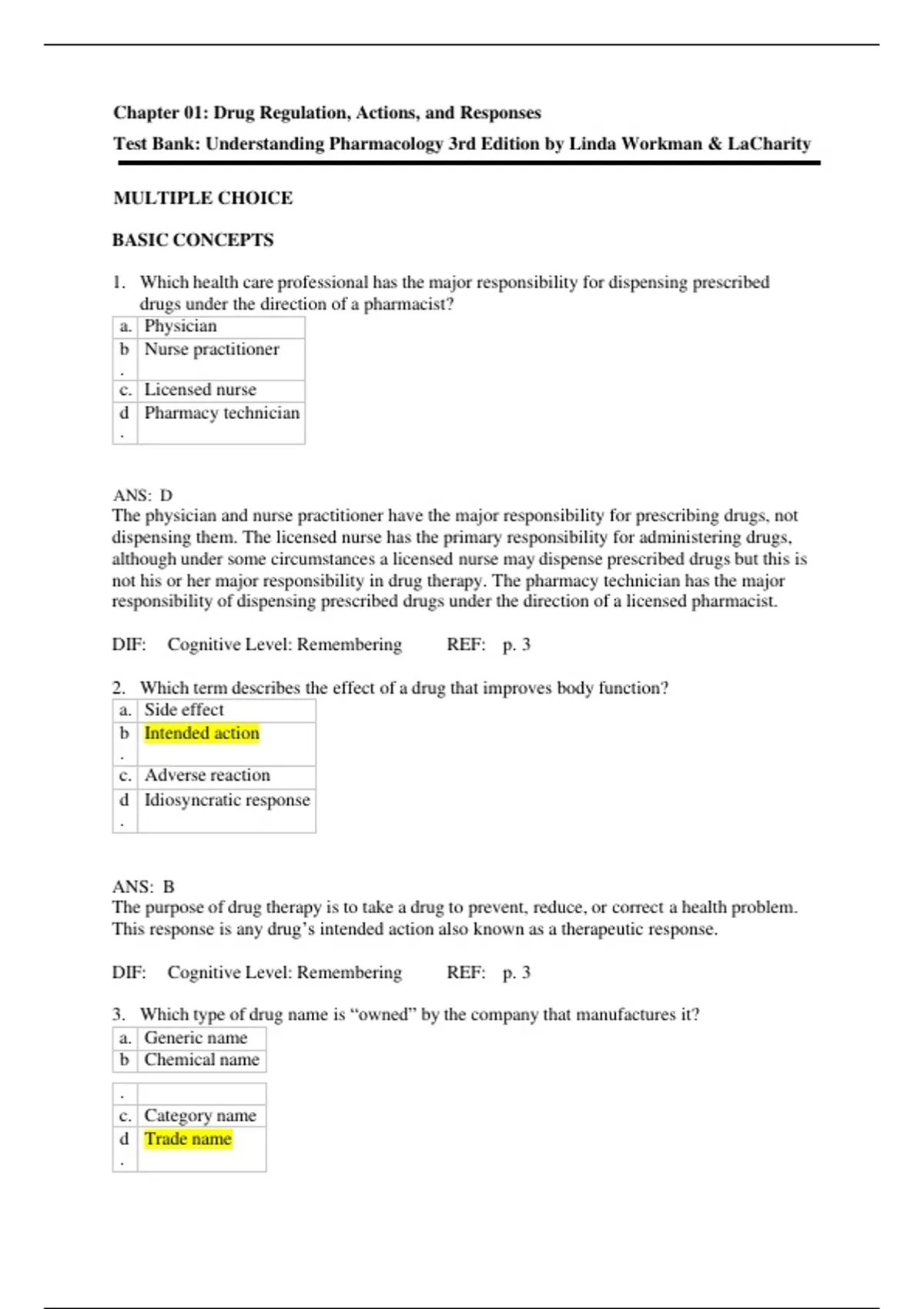Test Bank: Understanding Pharmacology 3rd Edition by Linda Workman & LaCharity