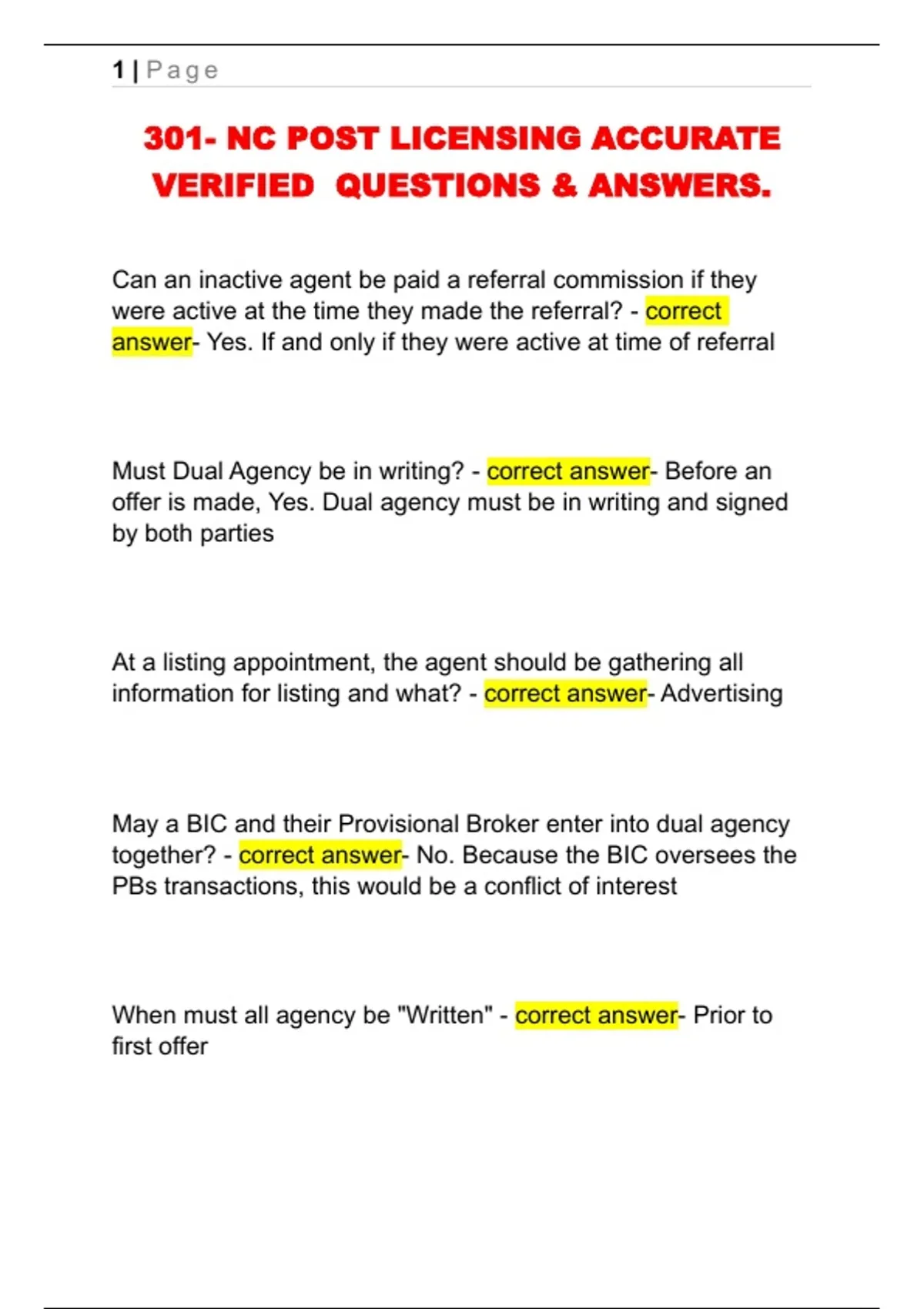 301- NC POST LICENSING ACCURATE VERIFIED QUESTIONS & ANSWERS.