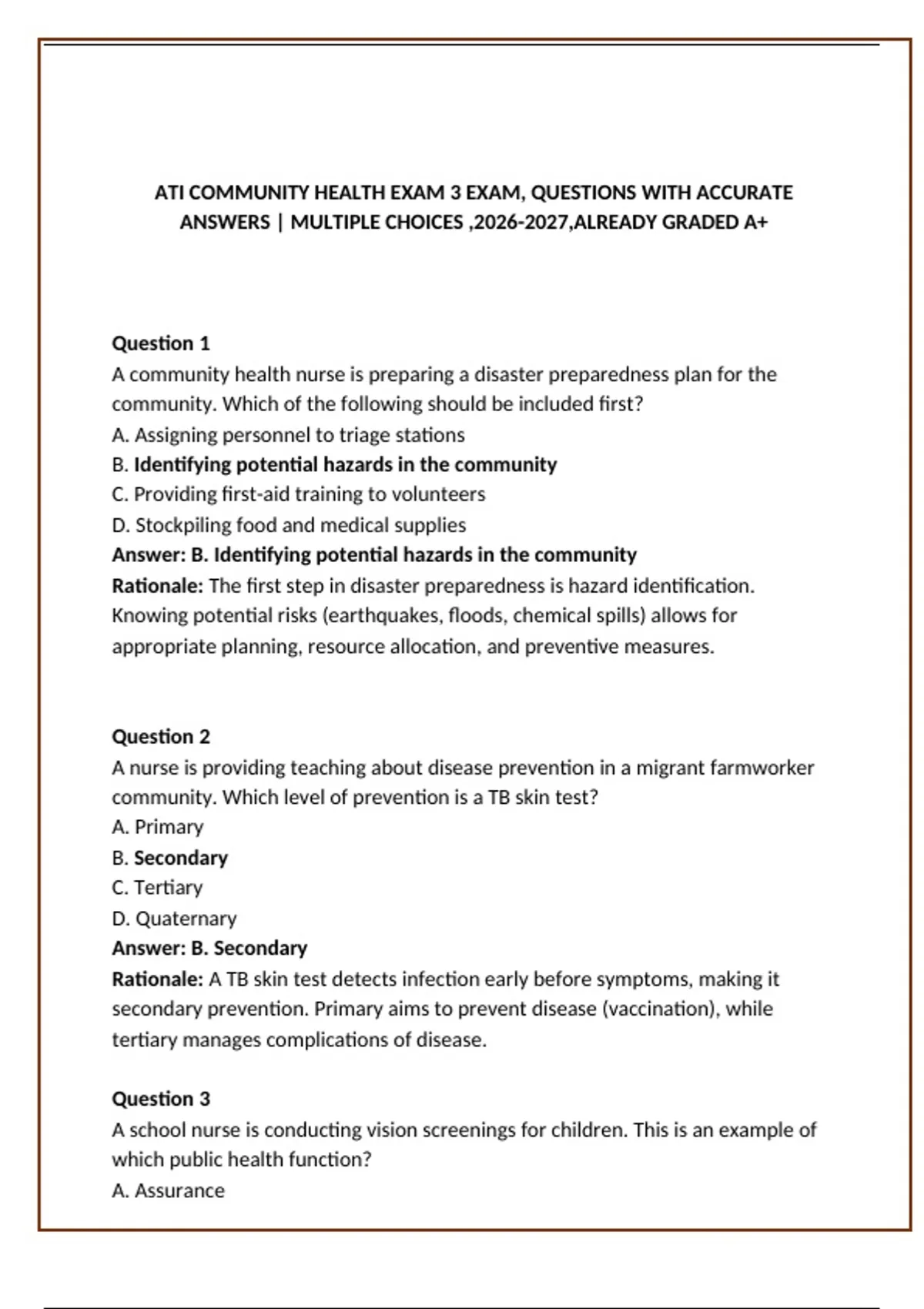 ANSWERS | MULTIPLE CHOICES ,2026-2027,ALREADY GRADED A+