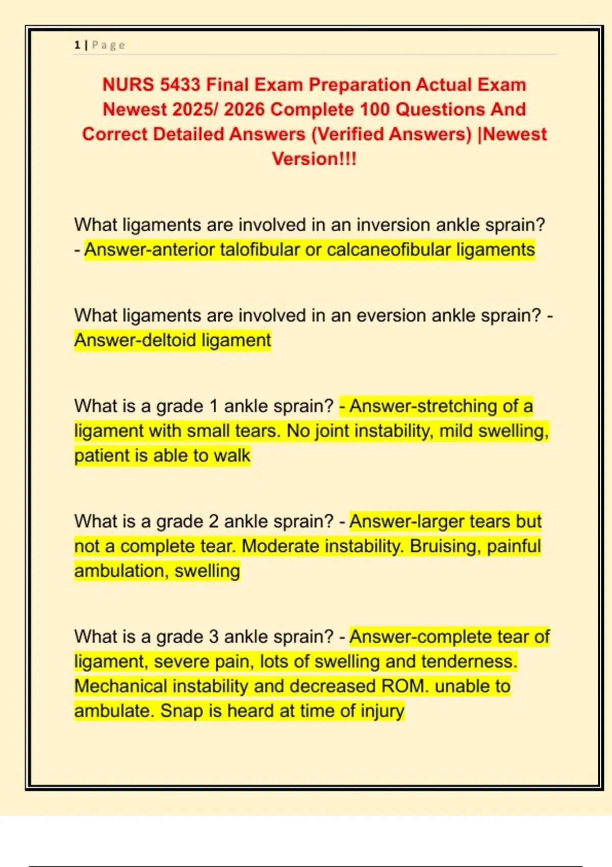 What is a grade 3 ankle sprain? - Answer-complete tear of