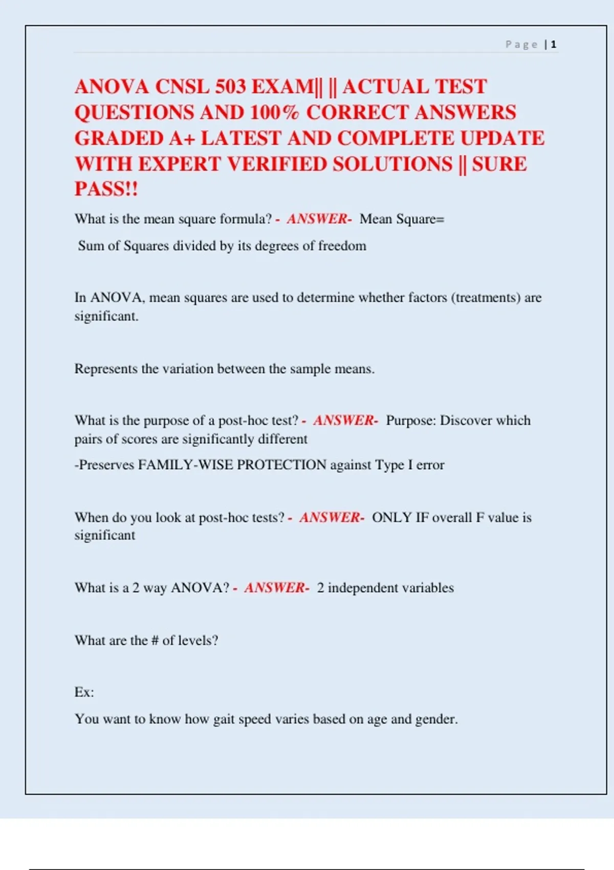 ANOVA CNSL 503 EXAM|| || ACTUAL TEST