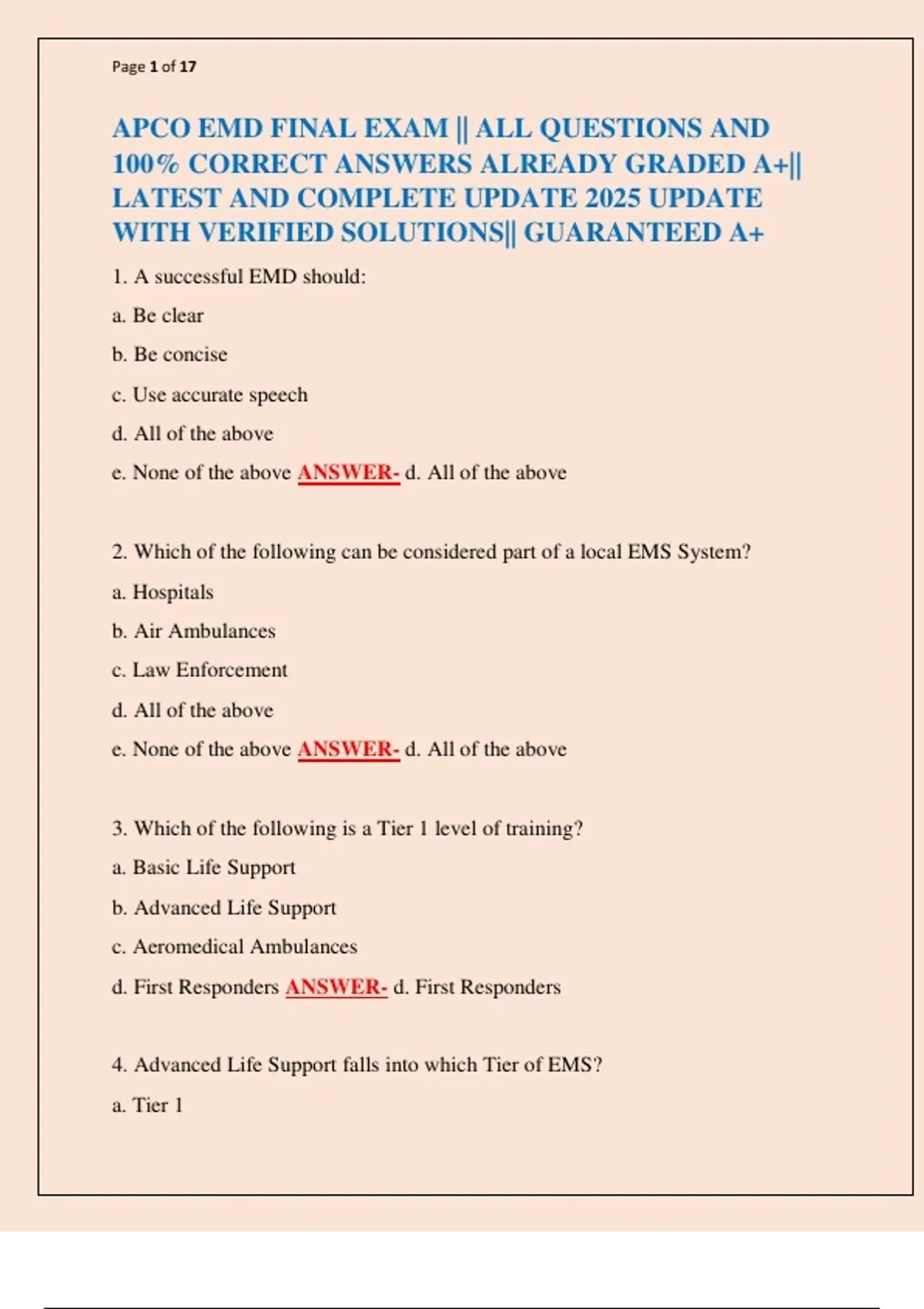 APCO EMD FINAL EXAM || ALL QUESTIONS AND