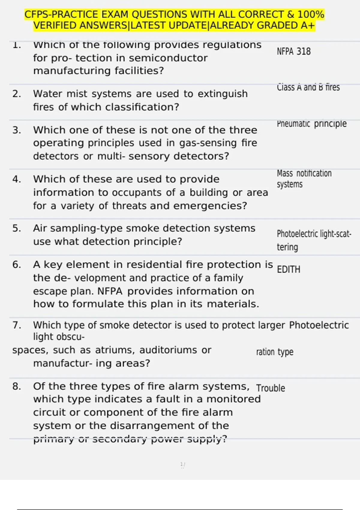 CFPS-PRACTICE EXAM QUESTIONS WITH ALL CORRECT & 100%