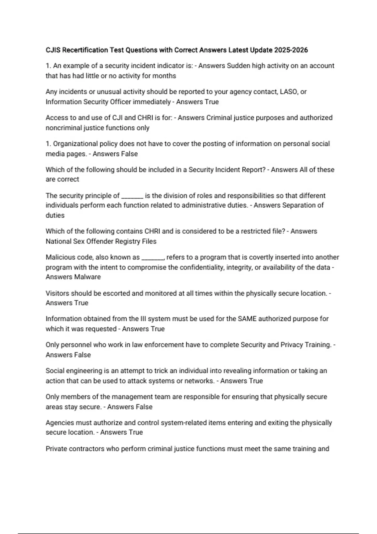 Access to and use of CJI and CHRI is for: - Answers Criminal justice purposes and authorized