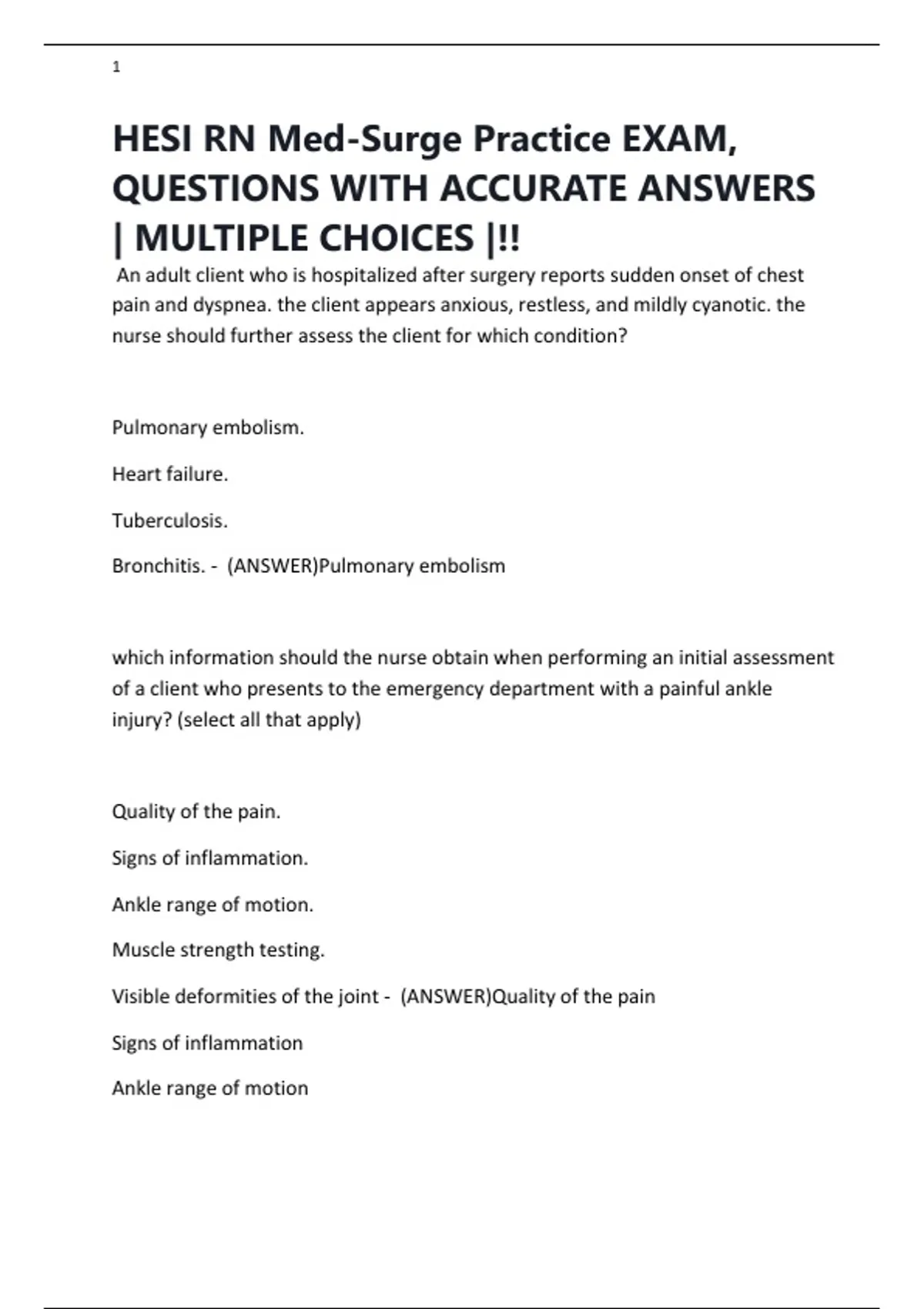 HESI RN Med-Surge Practice EXAM,
