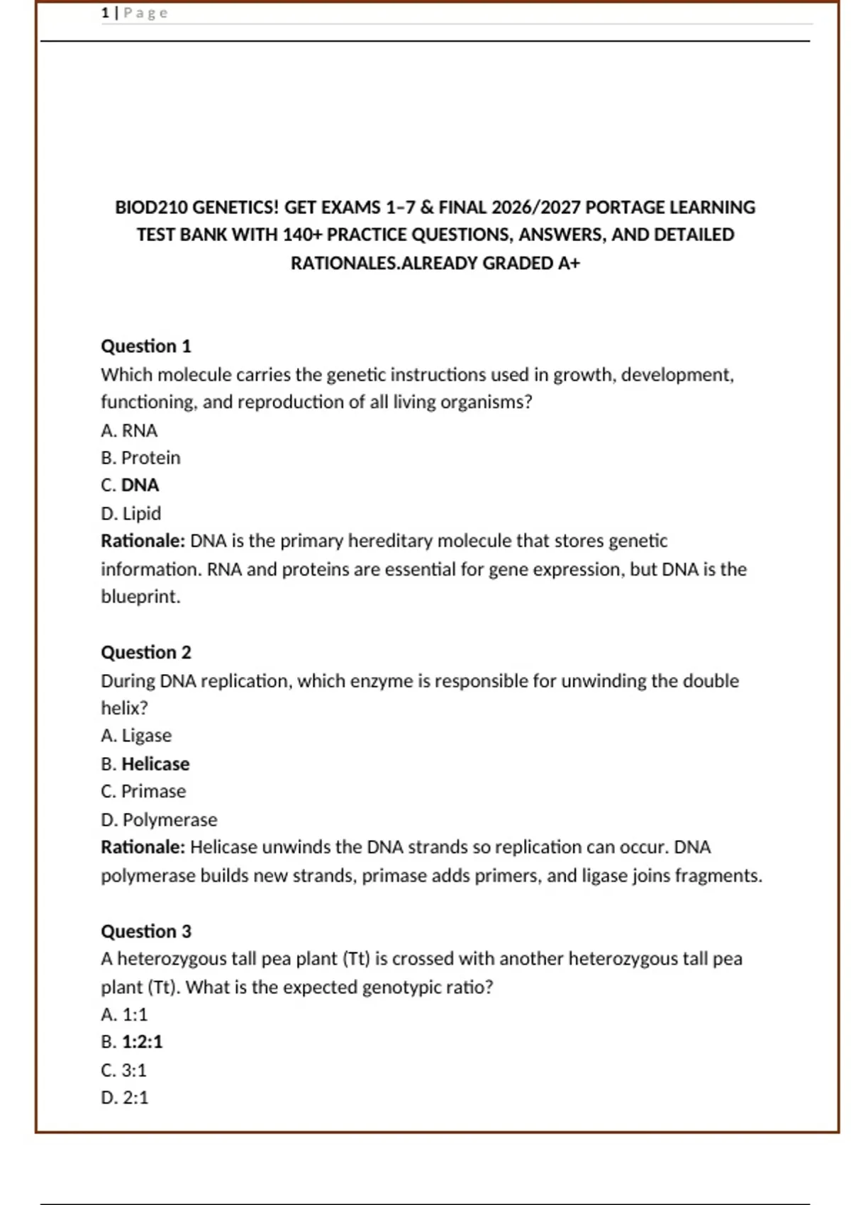 BIOD210 GENETICS! GET EXAMS 1–7 & FINAL 2026/2027 PORTAGE LEARNING