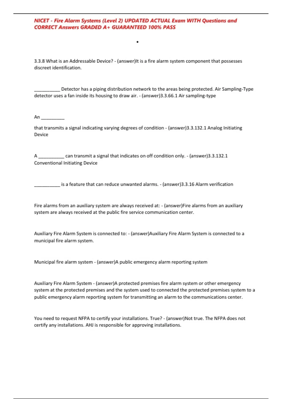 , NICET - Fire Alarm Systems (Level 2) UPDATED ACTUAL Exam WITH Questions and