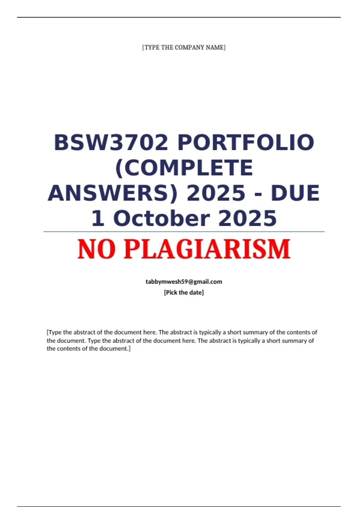 BSW3702 PORTFOLIO (COMPLETE ANSWERS) 2025 - DUE 1 October 2025;