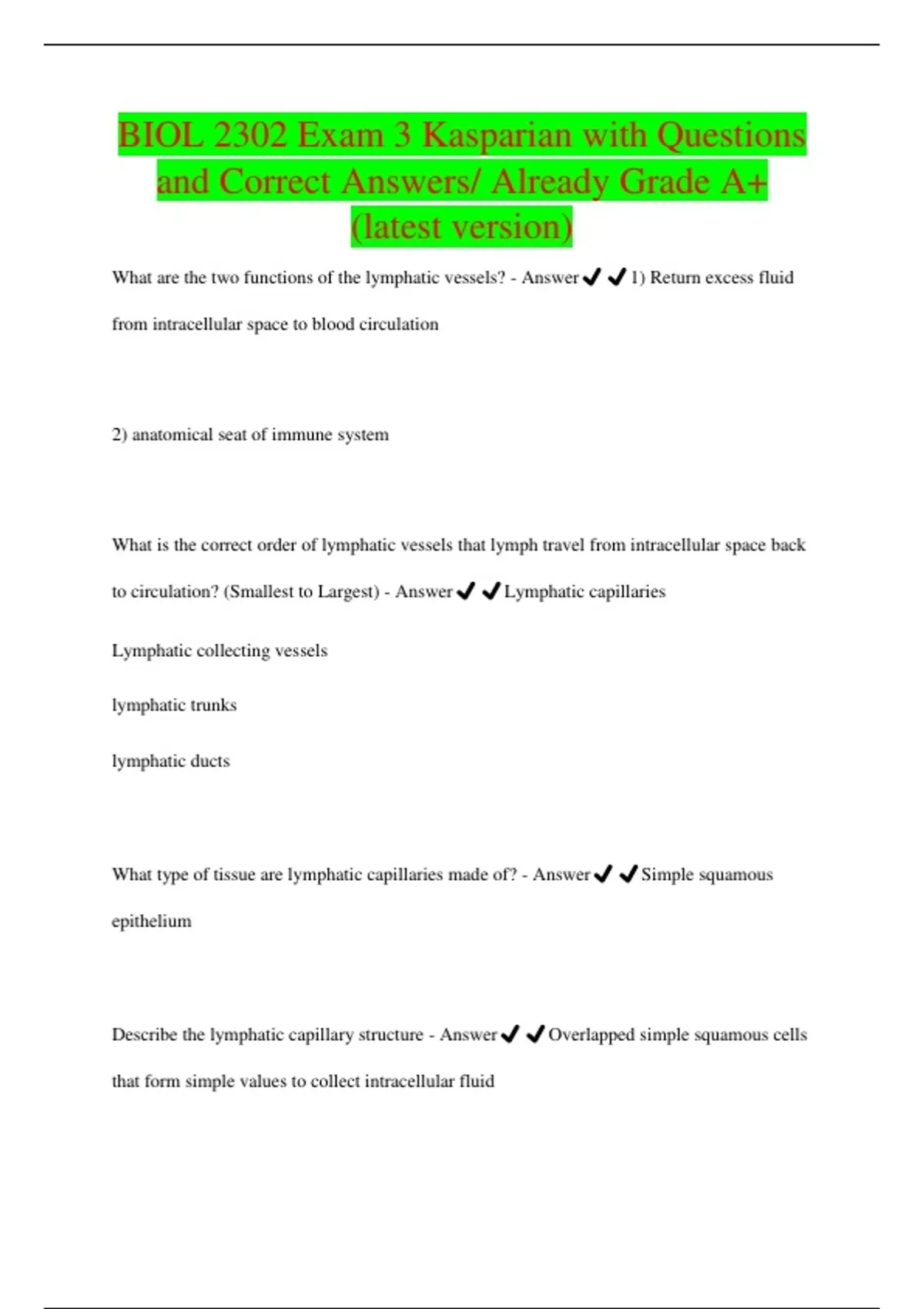 EXAM BUNDLE FOR BIOL 2302 Exam 3 Kasparian with Questions and Correct Answers/ Already Grade A+ (latest version)