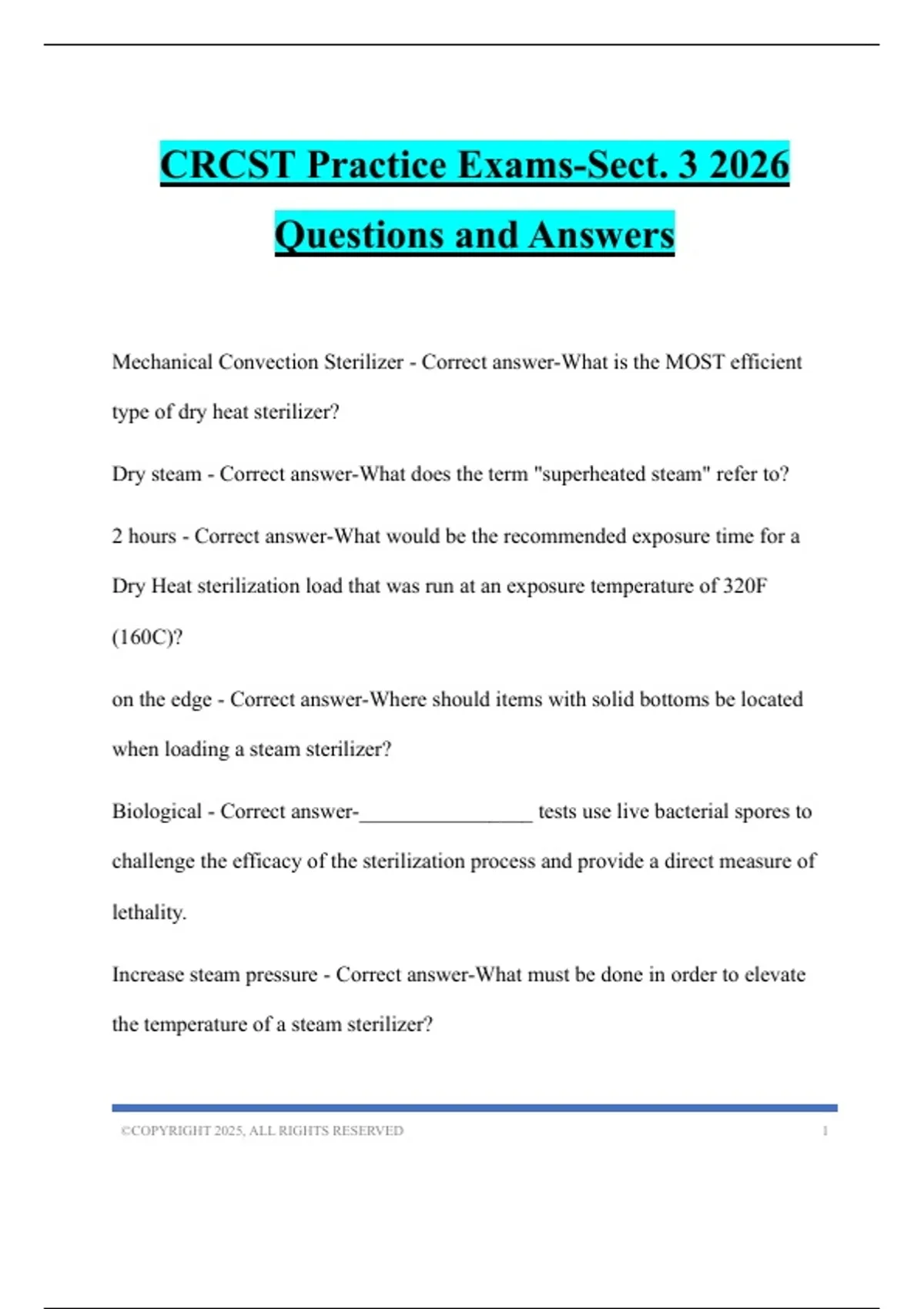 CRCST Practice Exams-Sect. 3 2026 Questions and Answers