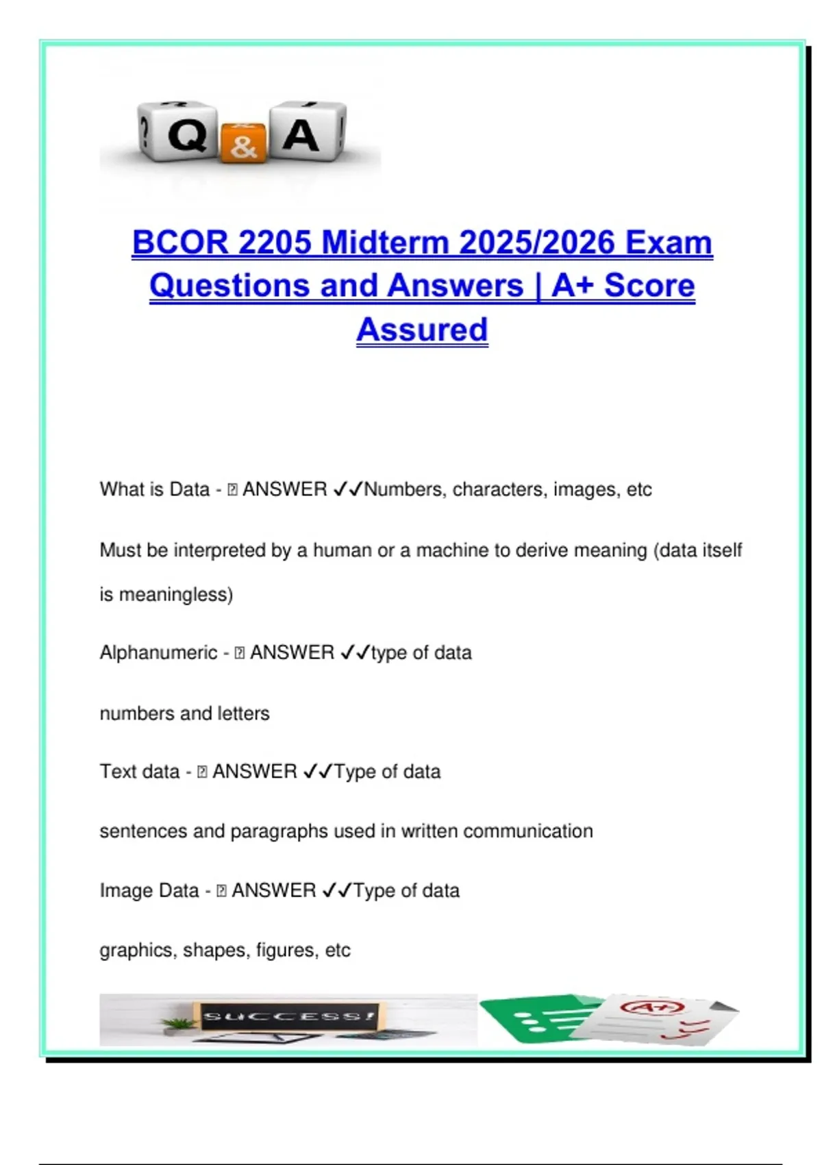 What is Data - 🧠 ANSWER ✔✔Numbers, characters, images, etc