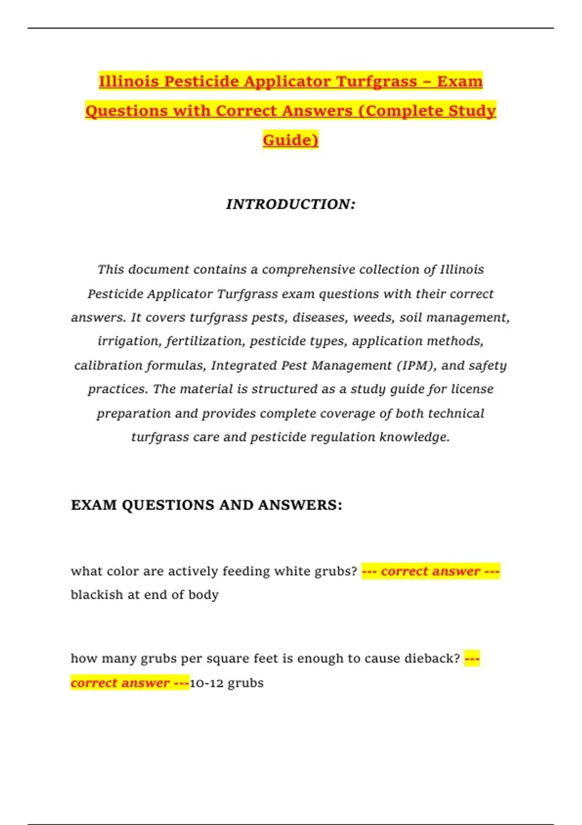 Pesticide Applicator Turfgrass exam questions with their correct