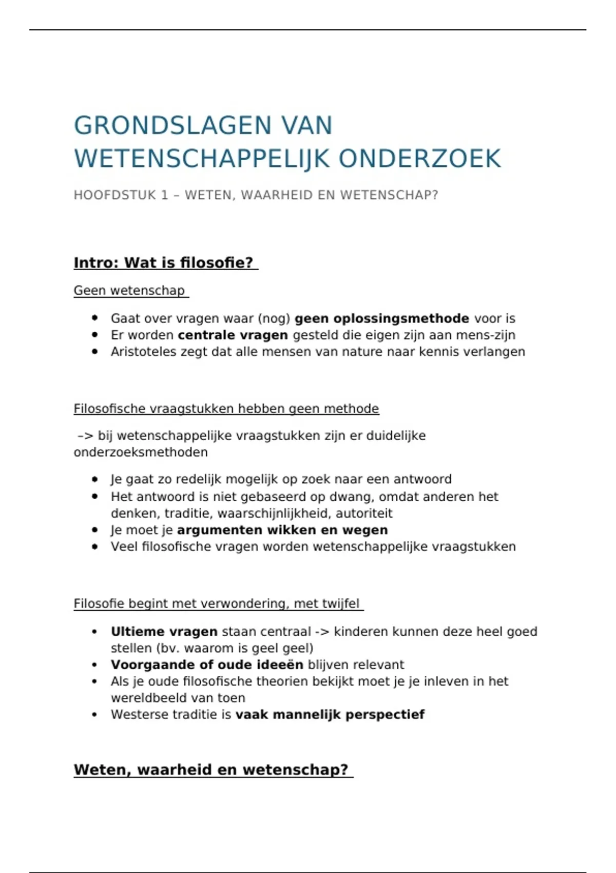 HOOFDSTUK 1 – WETEN, WAARHEID EN WETENSCHAP?