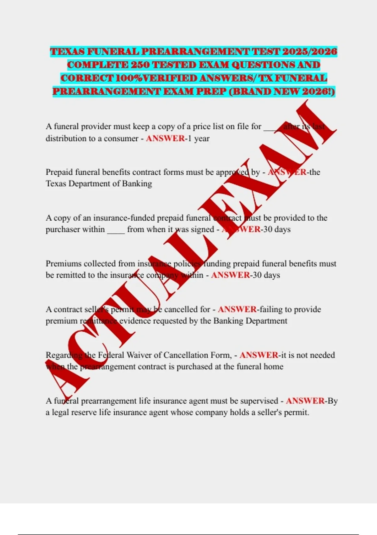 CORRECT 100%VERIFIED ANSWERS/ TX FUNERAL