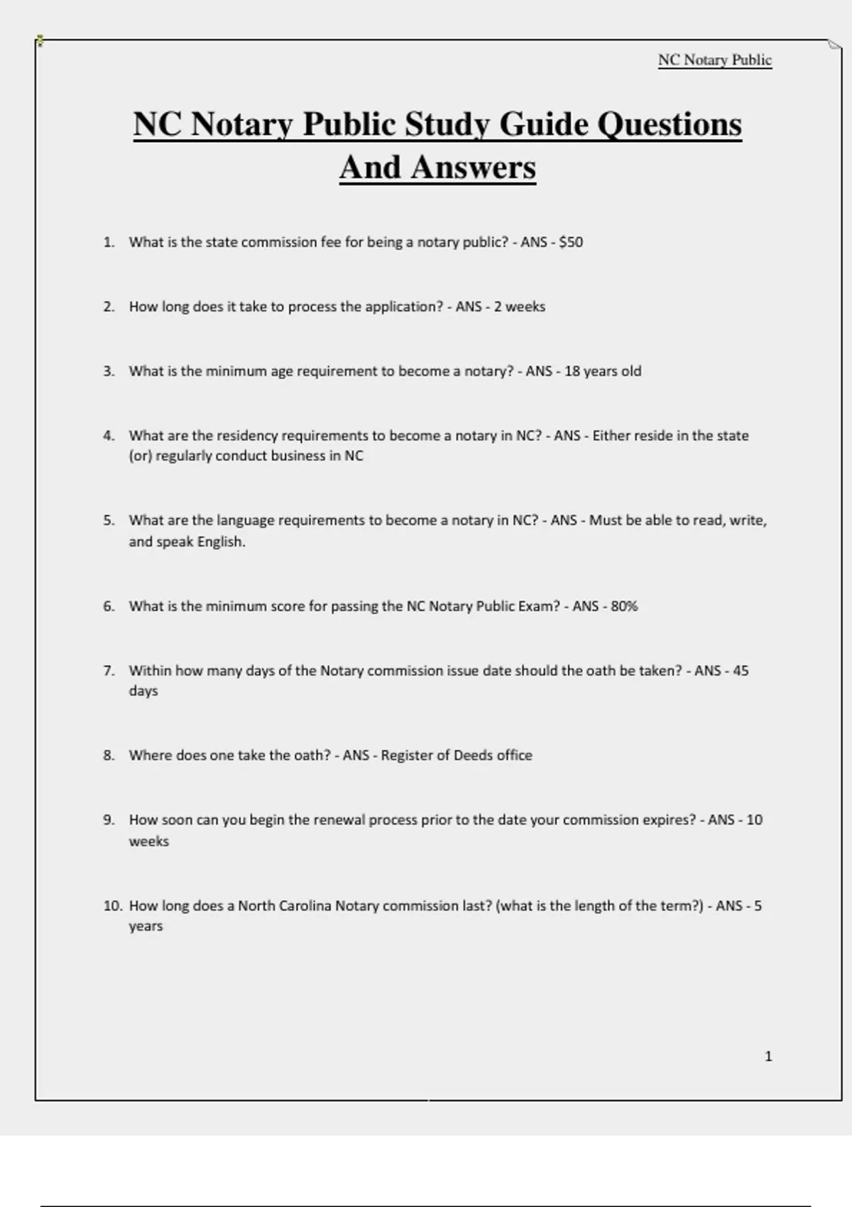 NC Notary Public Study Guide Questions