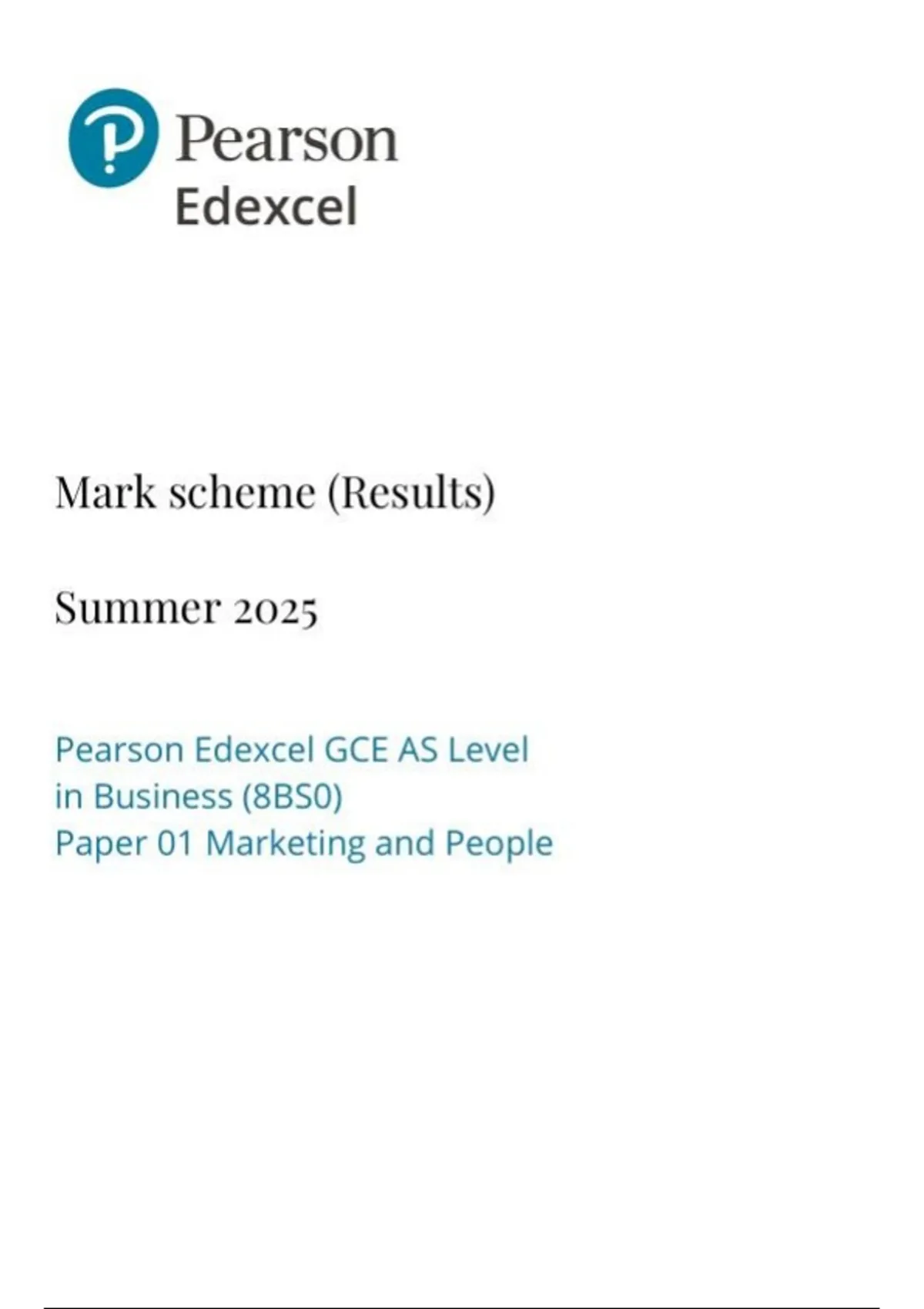 PEARSON EDEXCEL ADVANCED SUBSIDIARY LEVEL BUSINESS PAPER 1 JUNE 2025 FINAL MARK SCHEME