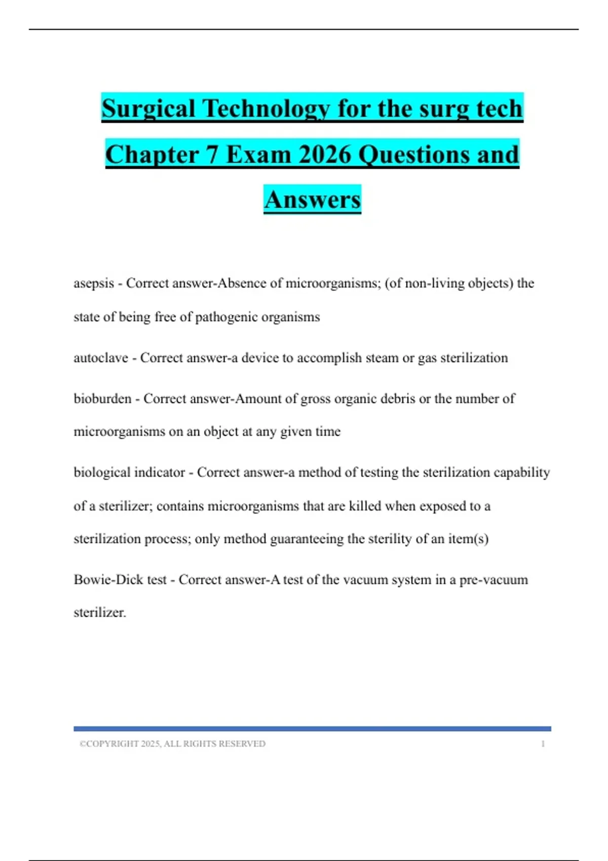 Surgical Technology for the surg tech Chapter 7 Exam 2026 Questions and Answers