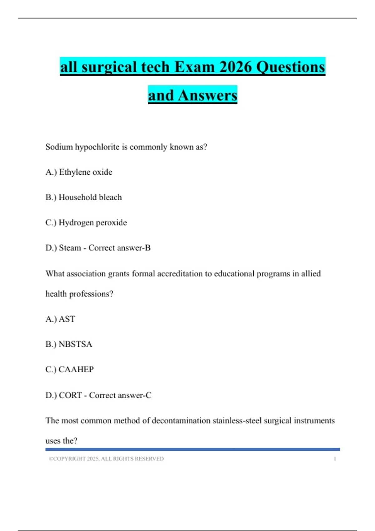 all surgical tech Exam 2026 Questions and Answers