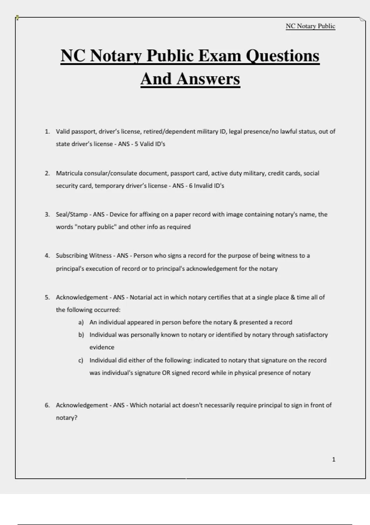 NC Notary Public Exam Questions