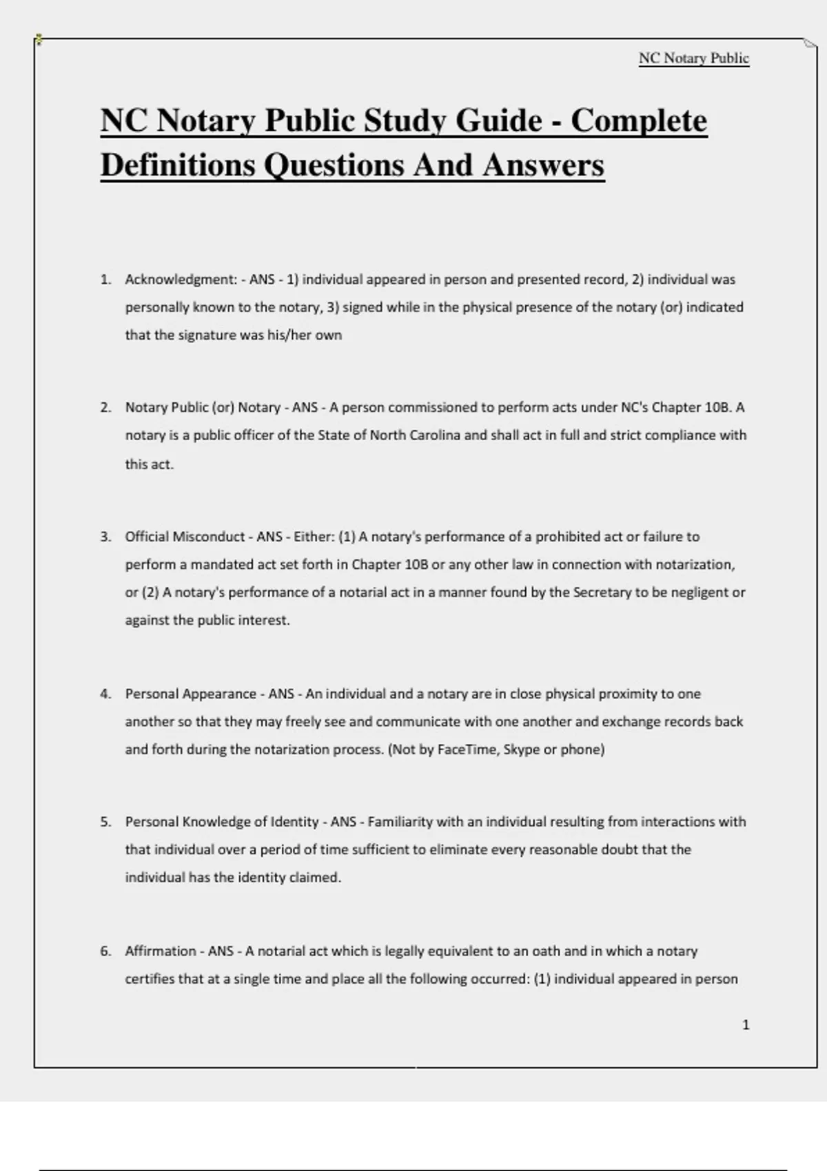 NC Notary Public Study Guide - Complete